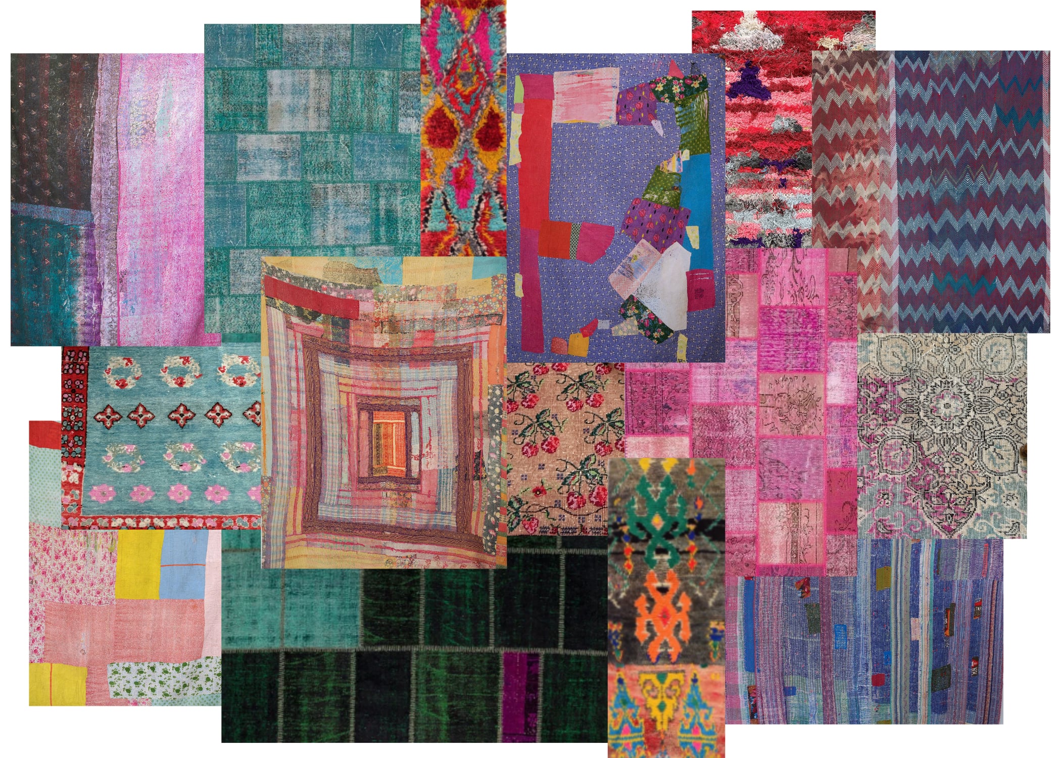 トルコやモロッコのヴィンテージラグ、インドのカンタキルト。