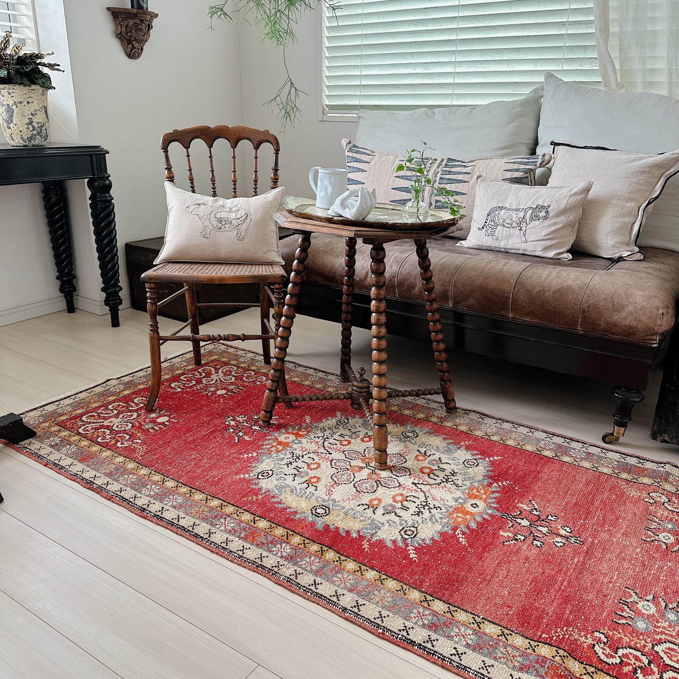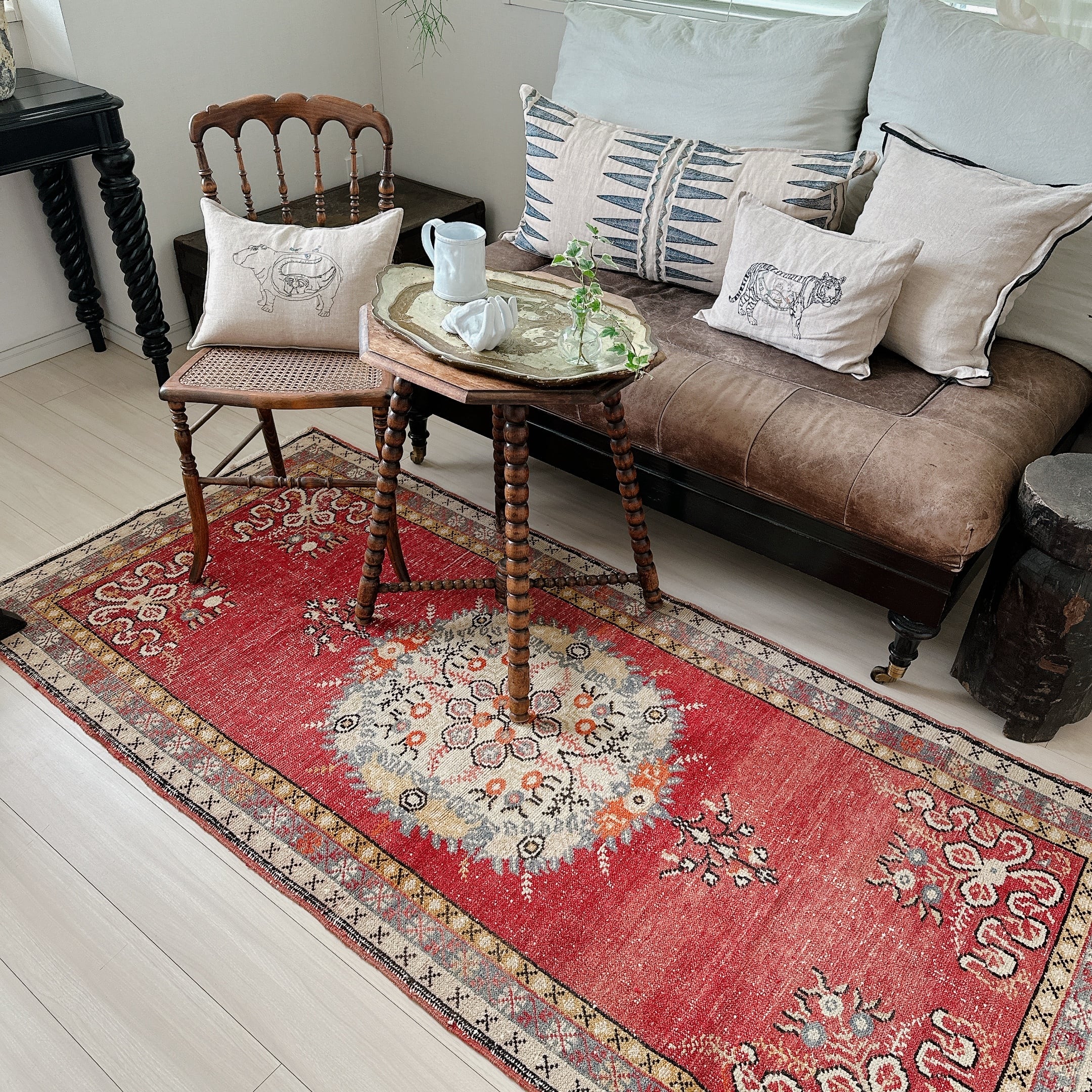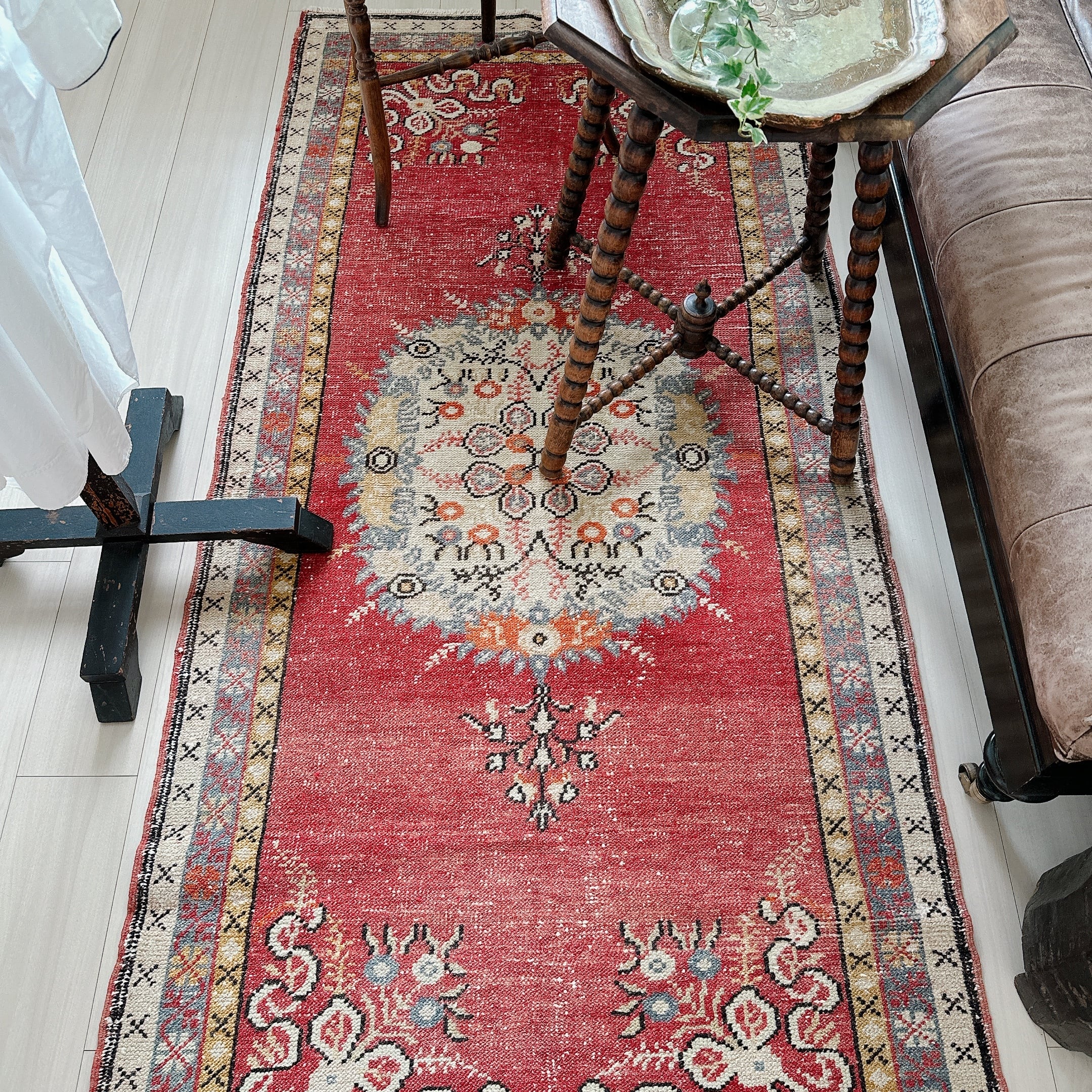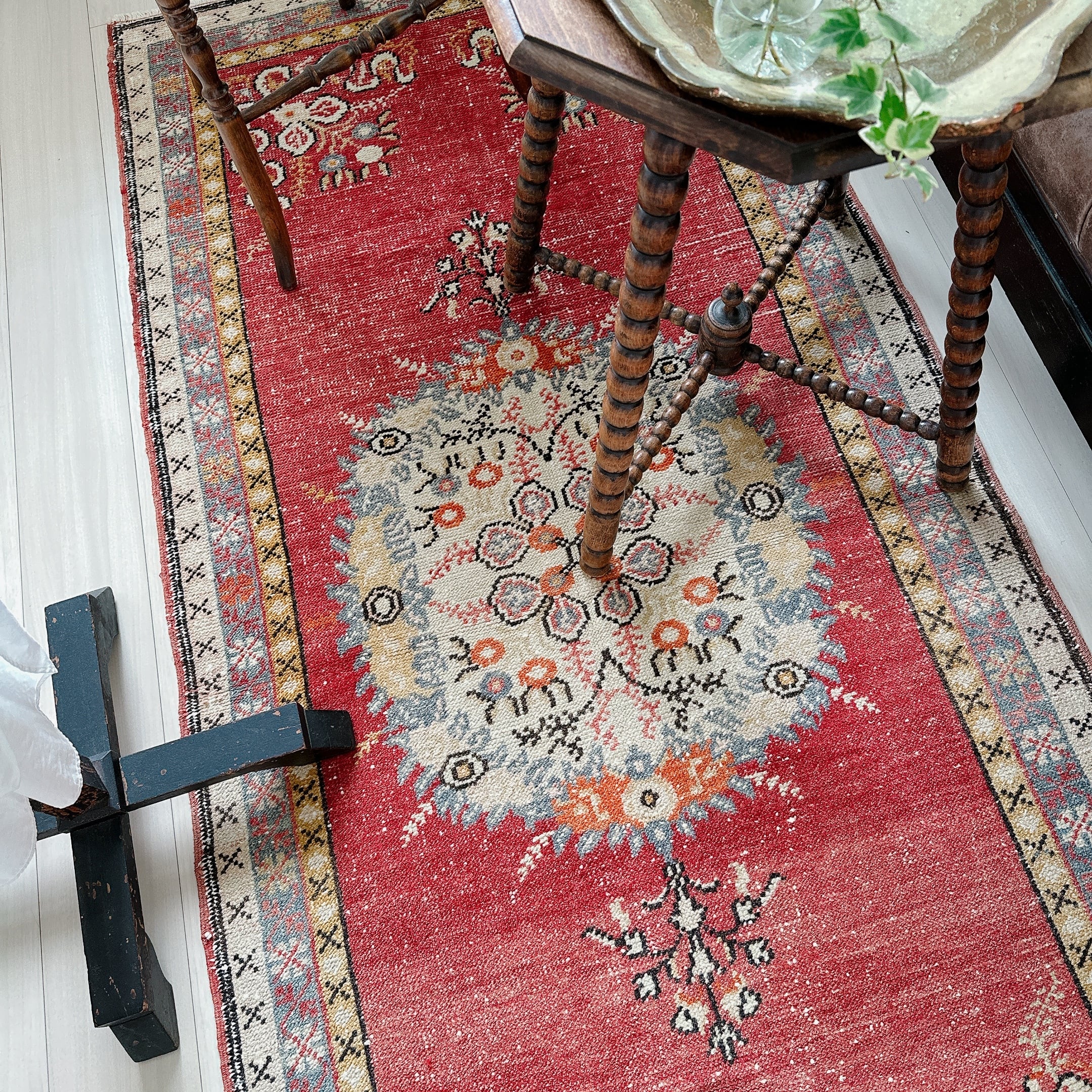 ・タグ:#トルコラグ #ヴィンテージラグ #ギュネイラグ #手織りラグ #一点もの #レッドラグ #グレイッシュブルー #マスタードイエロー #クラシックインテリア