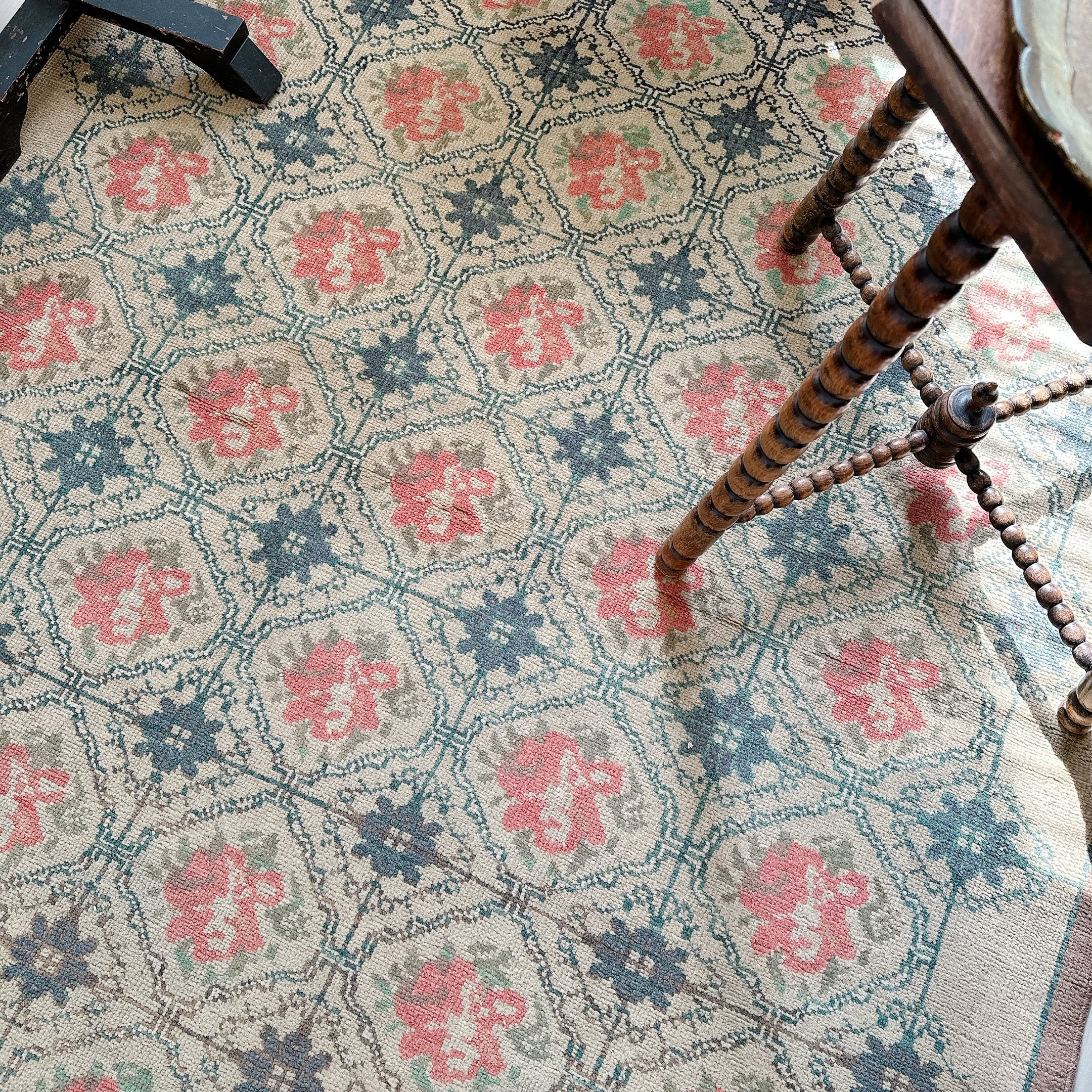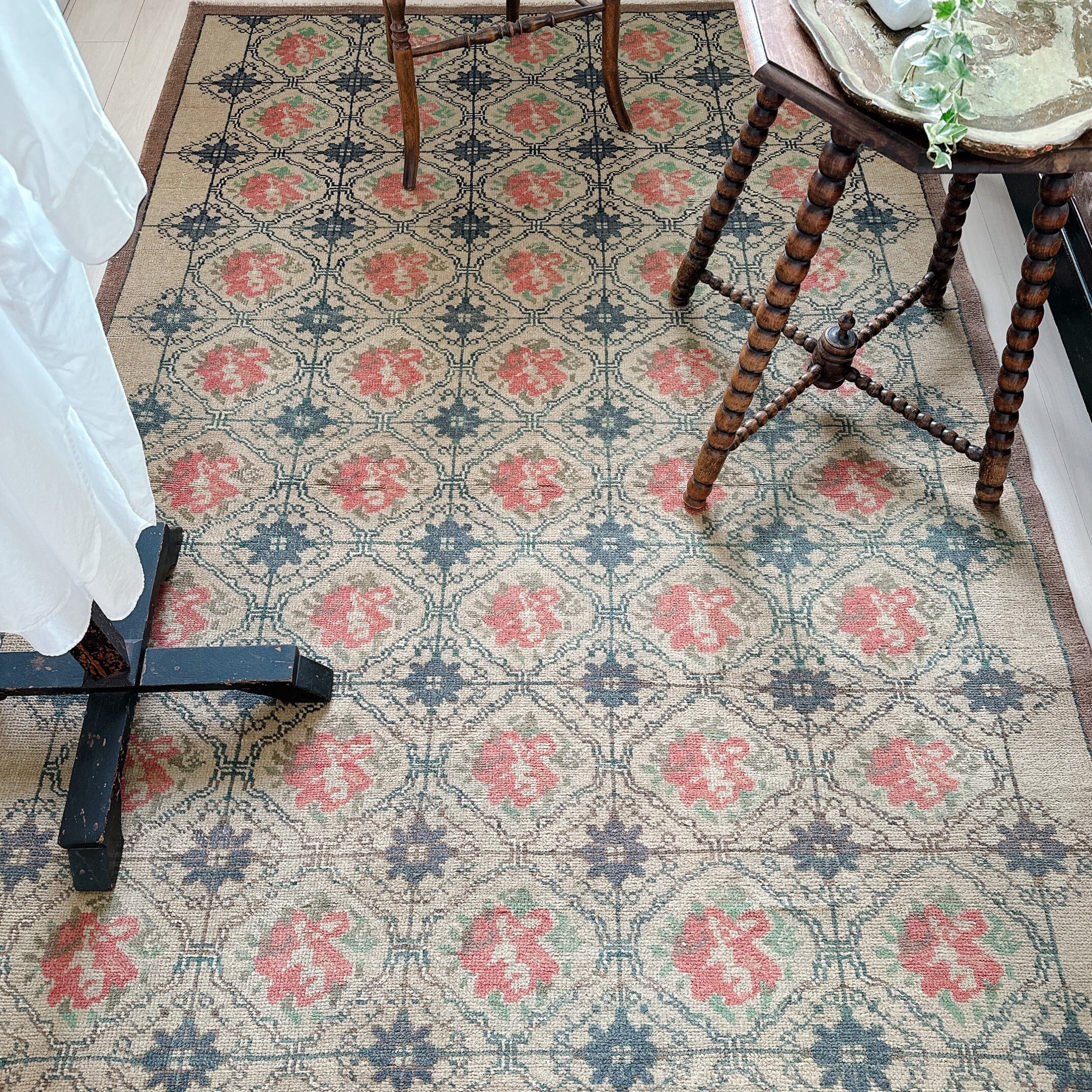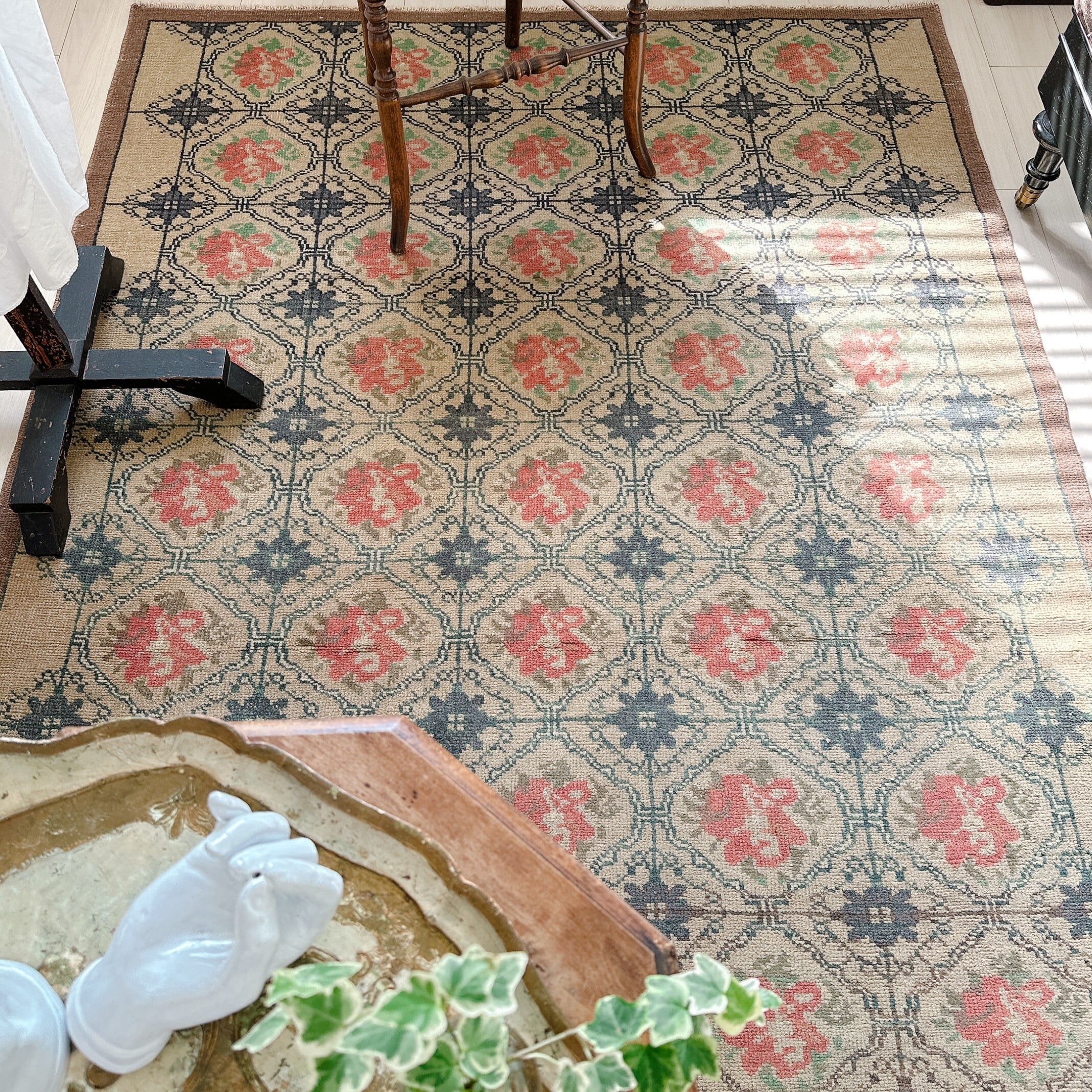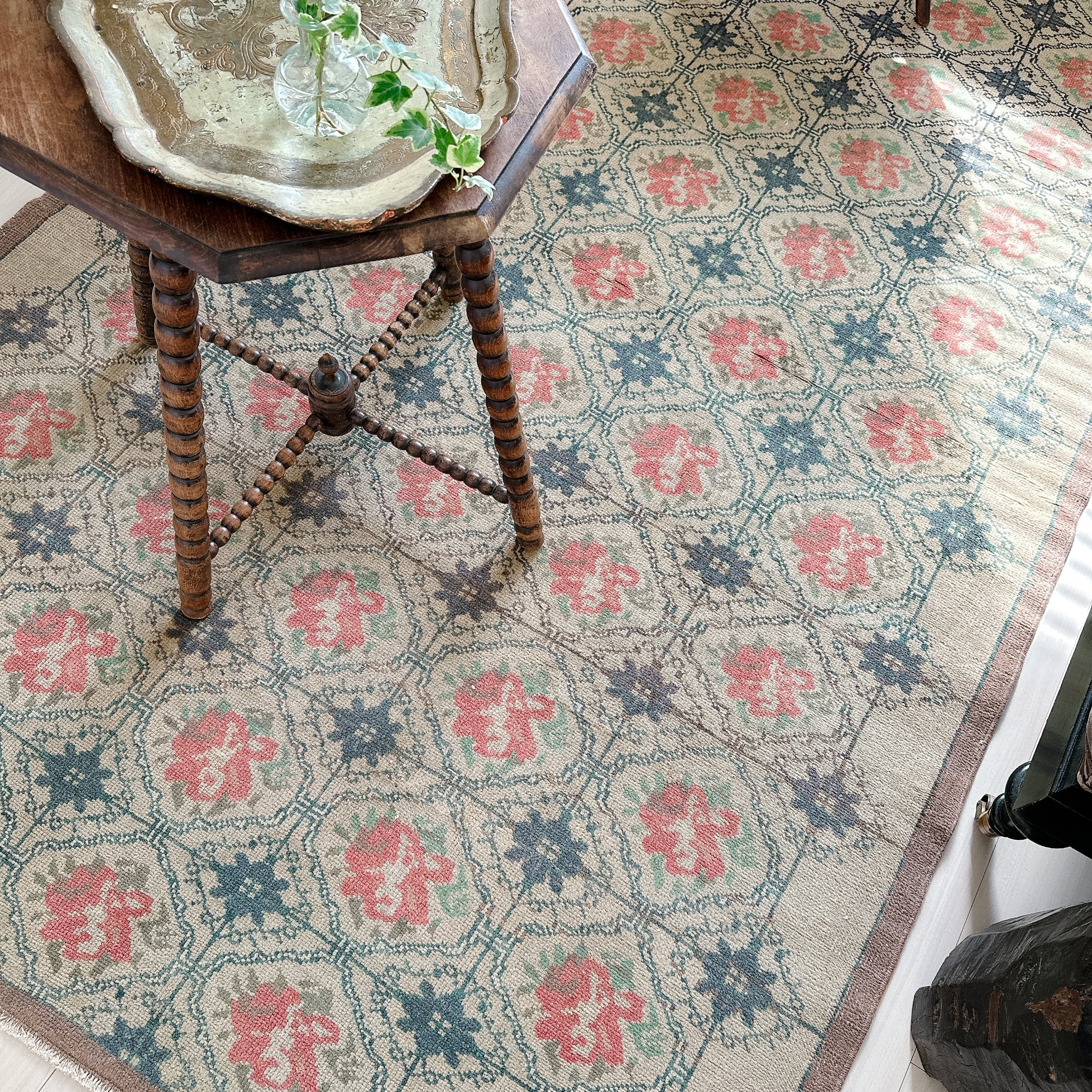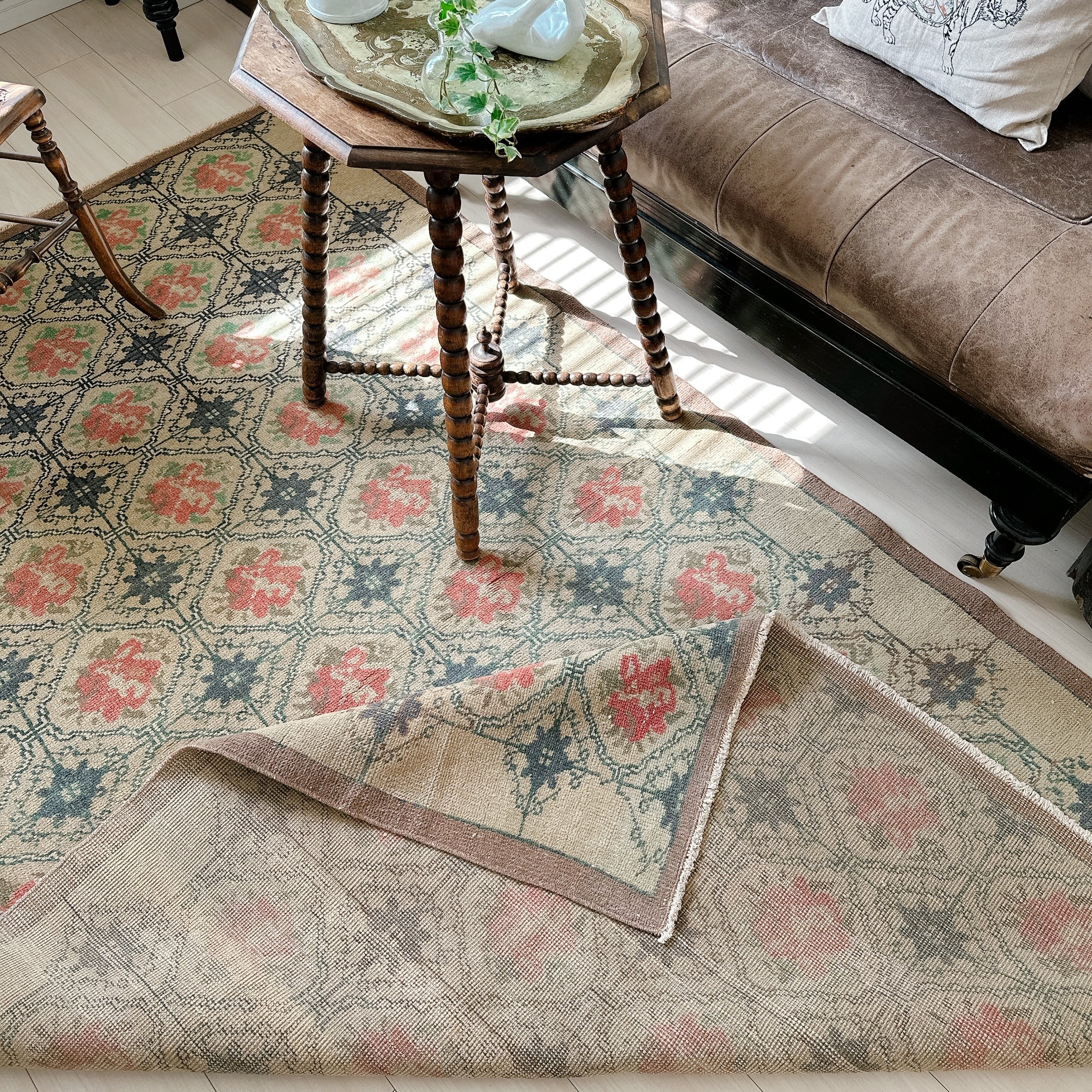 ・タグ:#トルコラグ #ヴィンテージラグ #イスパルタラグ #手織りラグ #一点もの #グレージュラグ #レトロラグ #フローラルラグ #クラシックインテリア #ナチュラルヴィンテージ