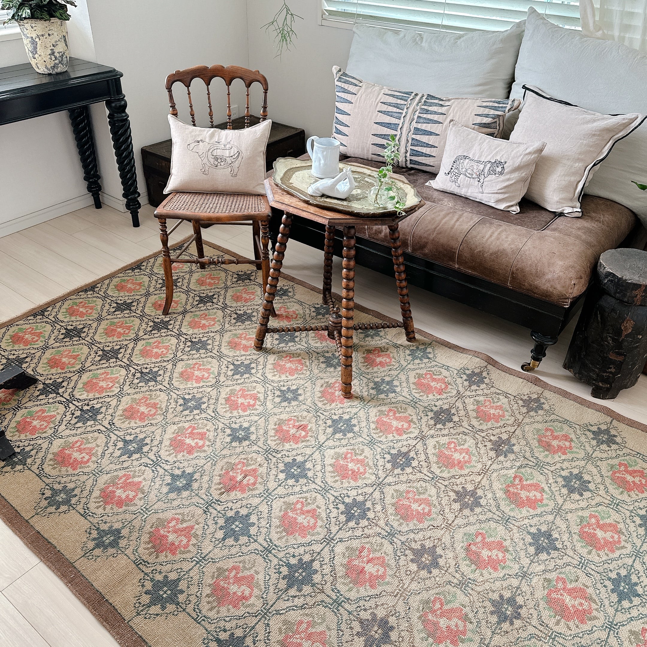 クラシカルでありながらモダンな印象を併せ持つ、完成度の高いヴィンテージラグです。