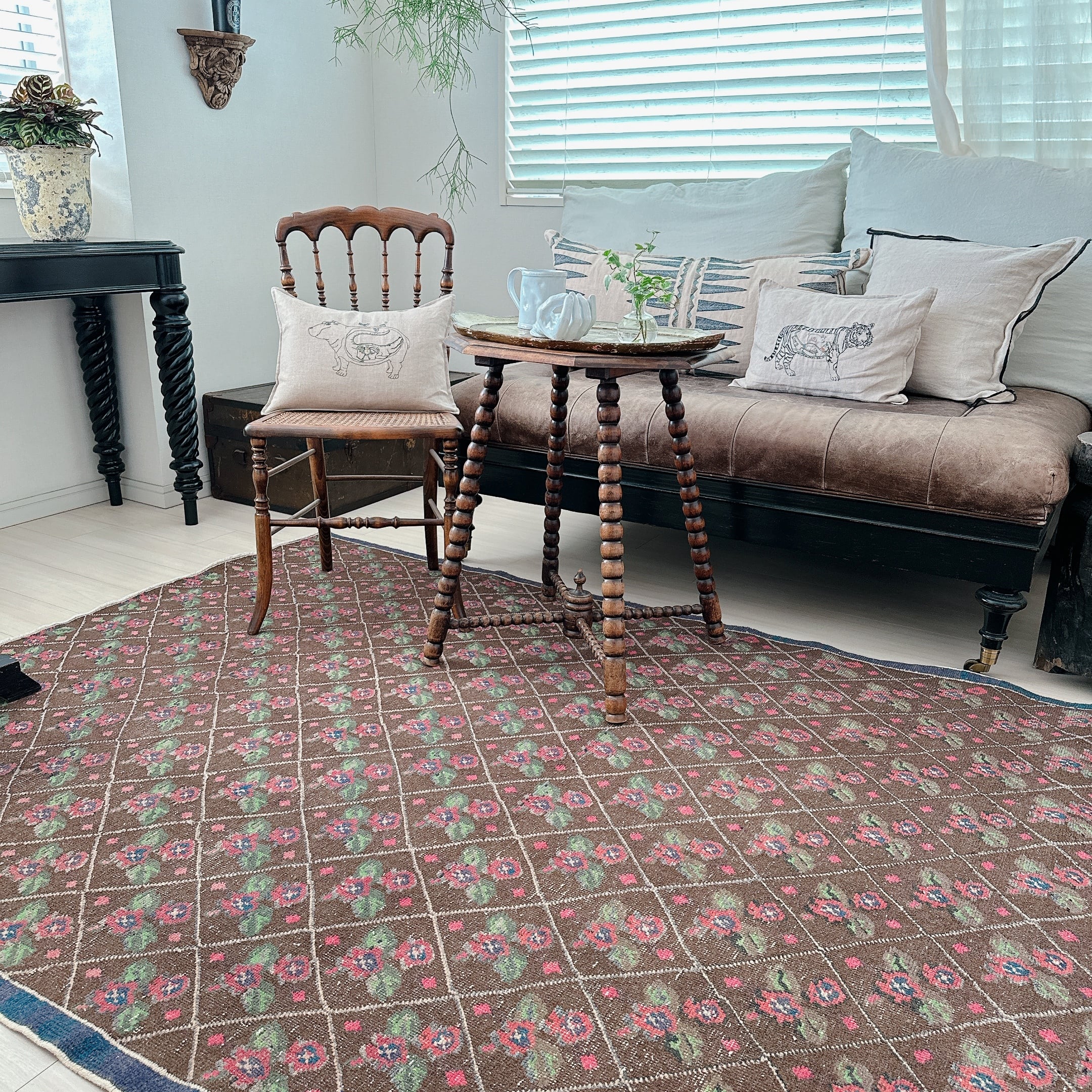・タグ:#トルコラグ #ヴィンテージラグ #イスパルタラグ #手織りラグ #一点もの #ブラウンラグ #フローラルラグ #クラシックインテリア #ナチュラルヴィンテージ