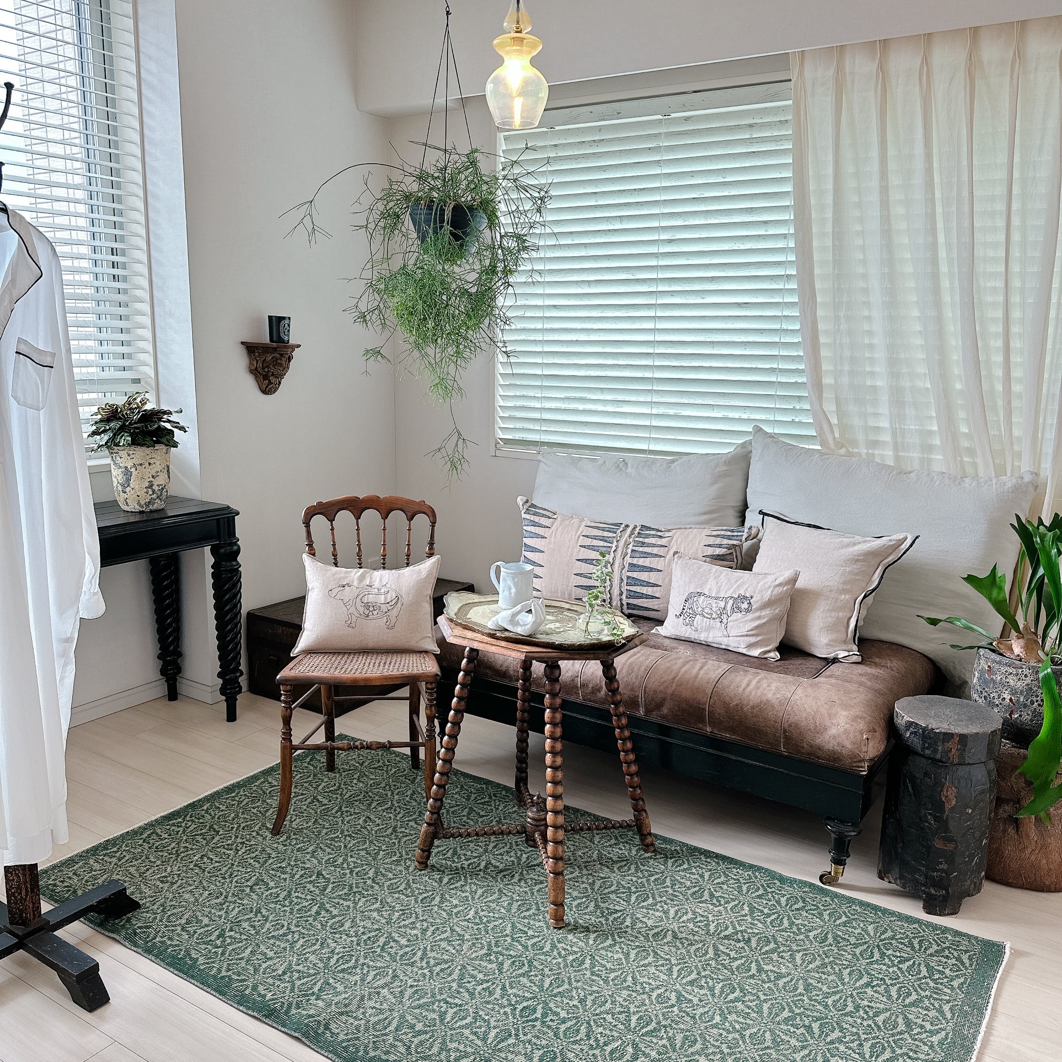 ソファ前やベッドサイドなどにもしっくりと馴染み、穏やかで心地よい空間を演出してくれる一枚です。