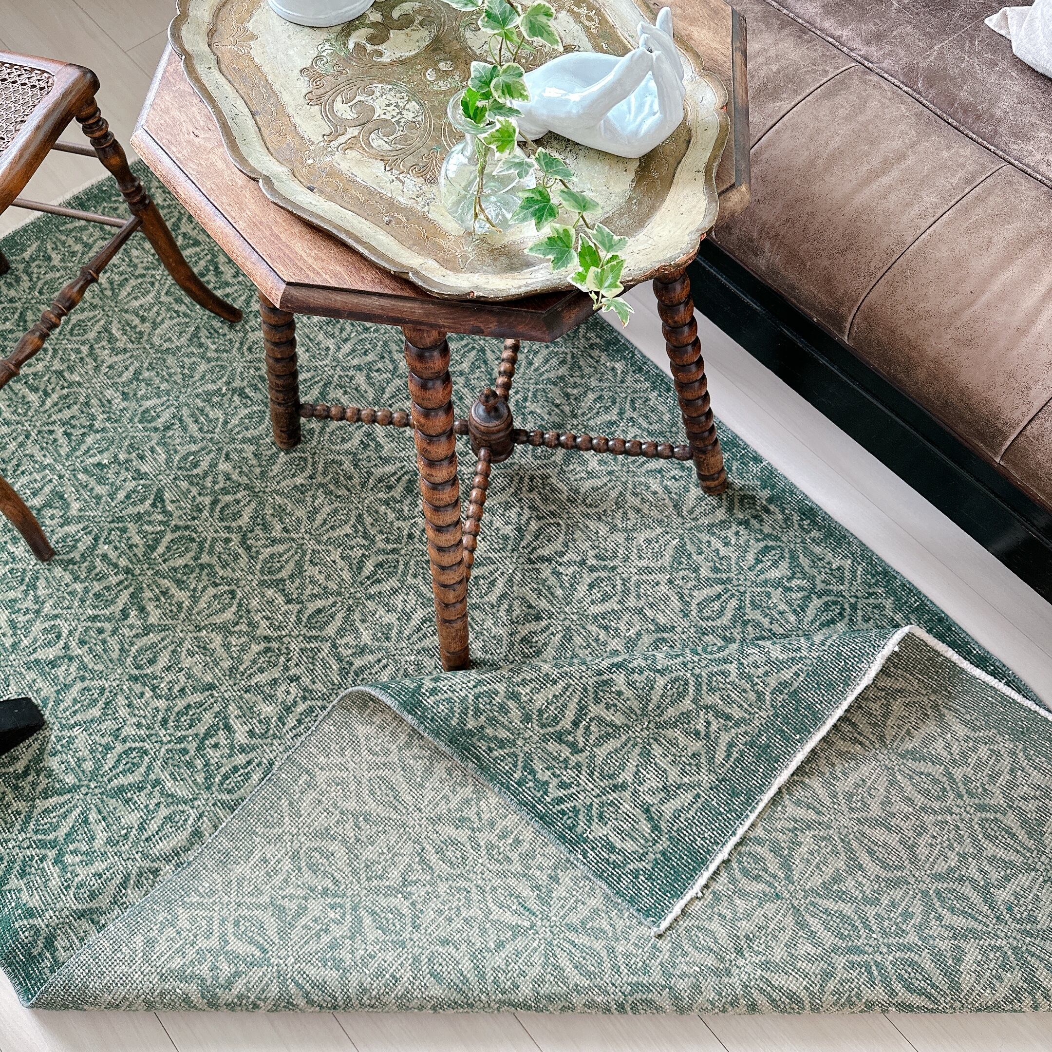 ・タグ:#トルコラグ #ヴィンテージラグ #イスパルタラグ #手織りラグ #一点もの #グリーンラグ #リーフラグ #総柄ラグ #ナチュラルインテリア #クラシックヴィンテージ