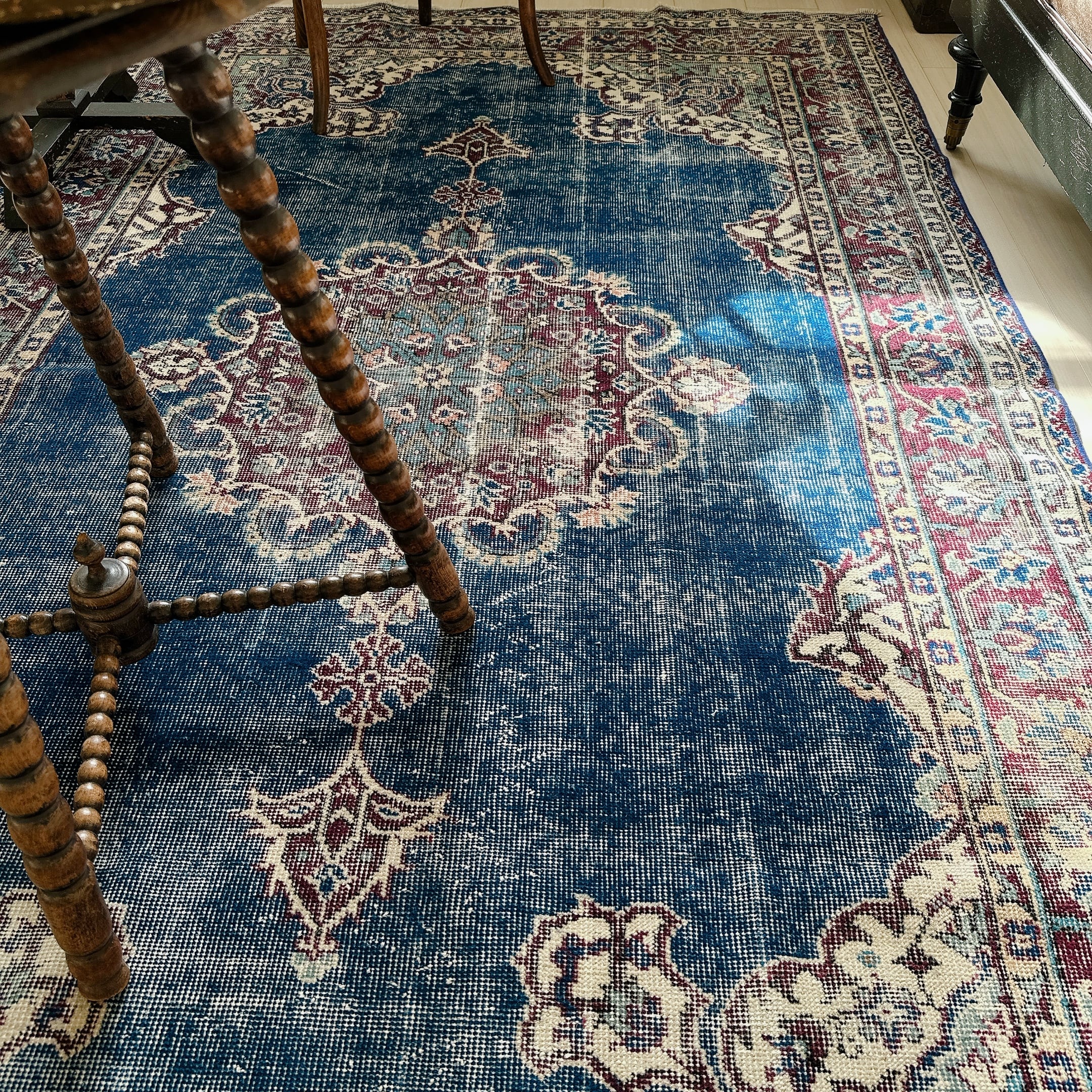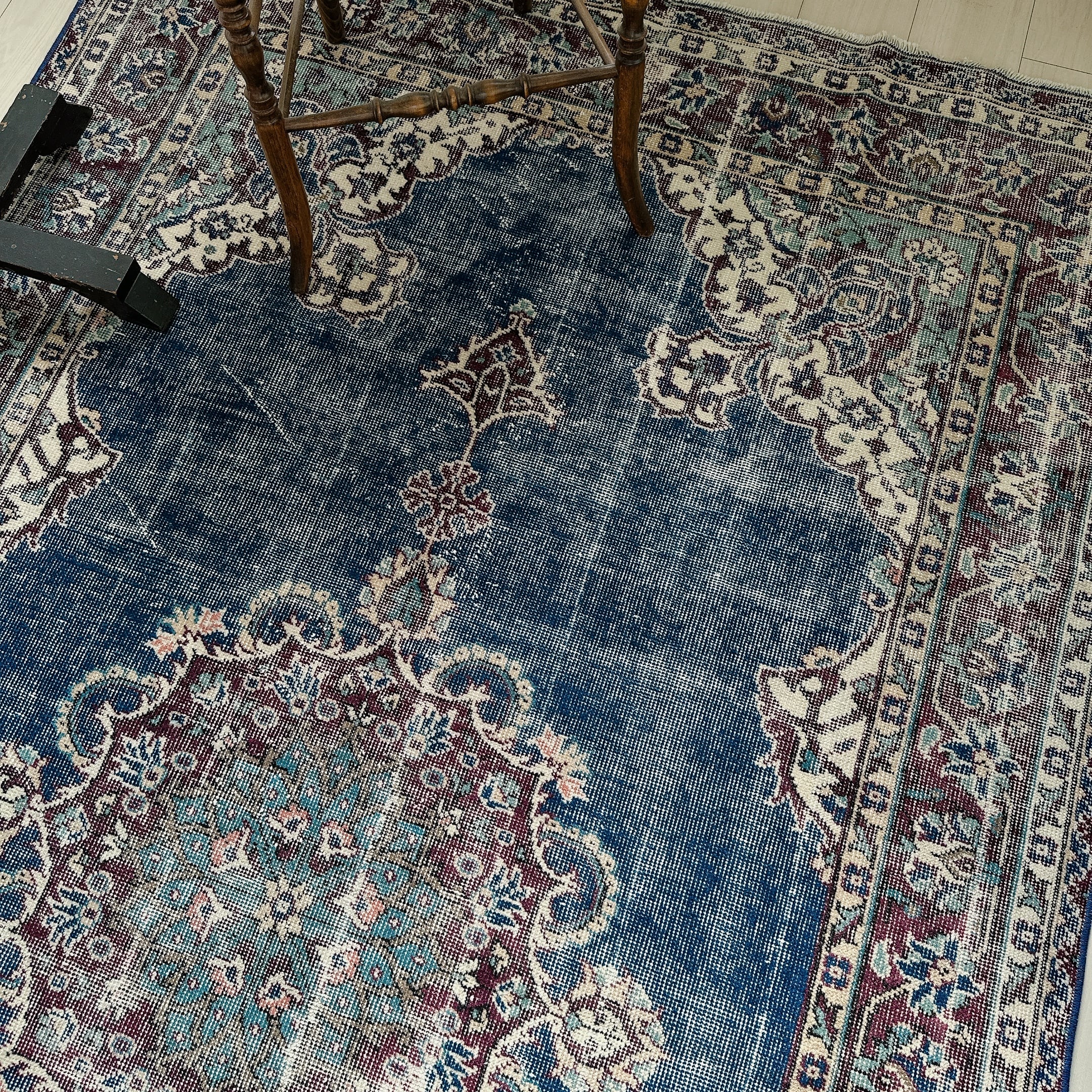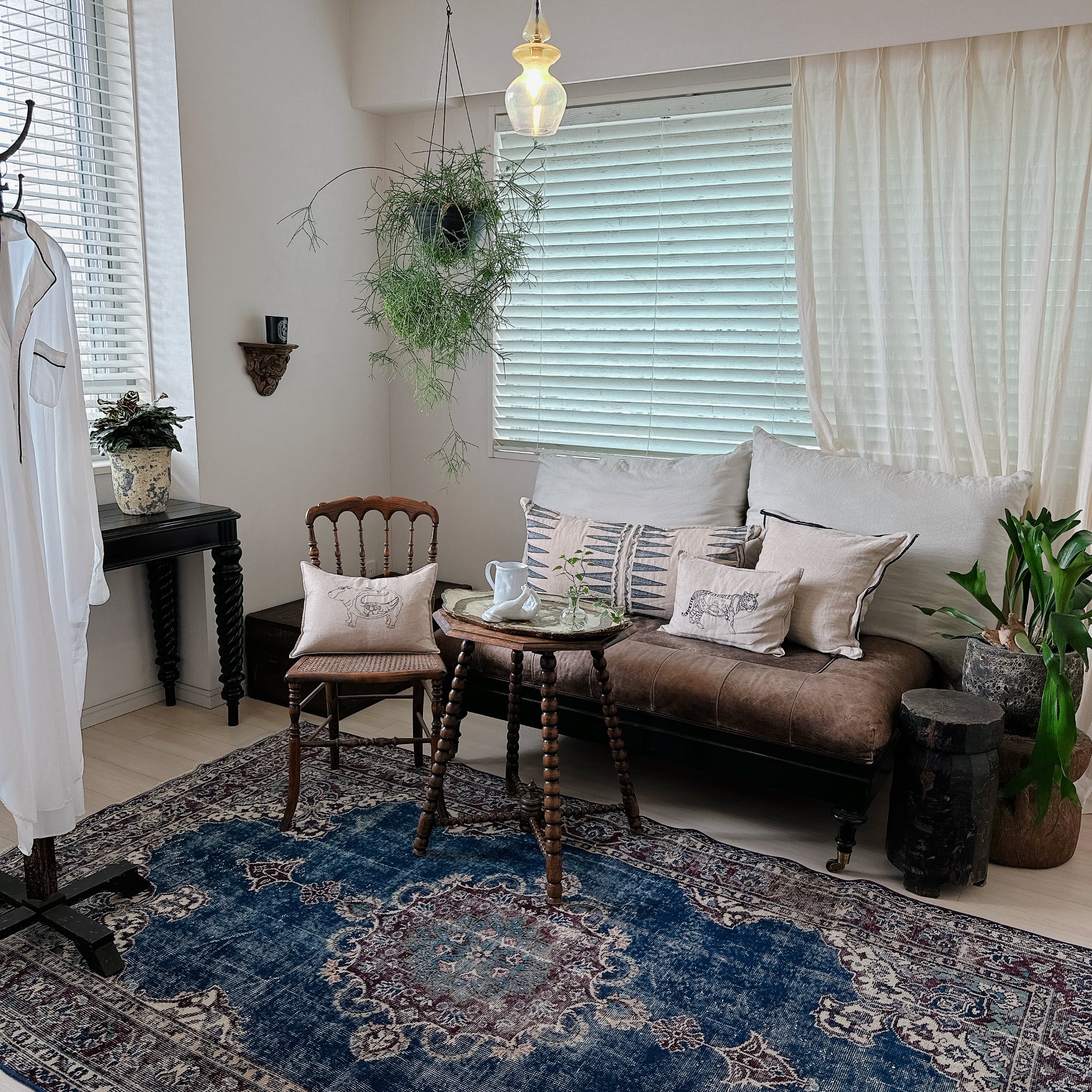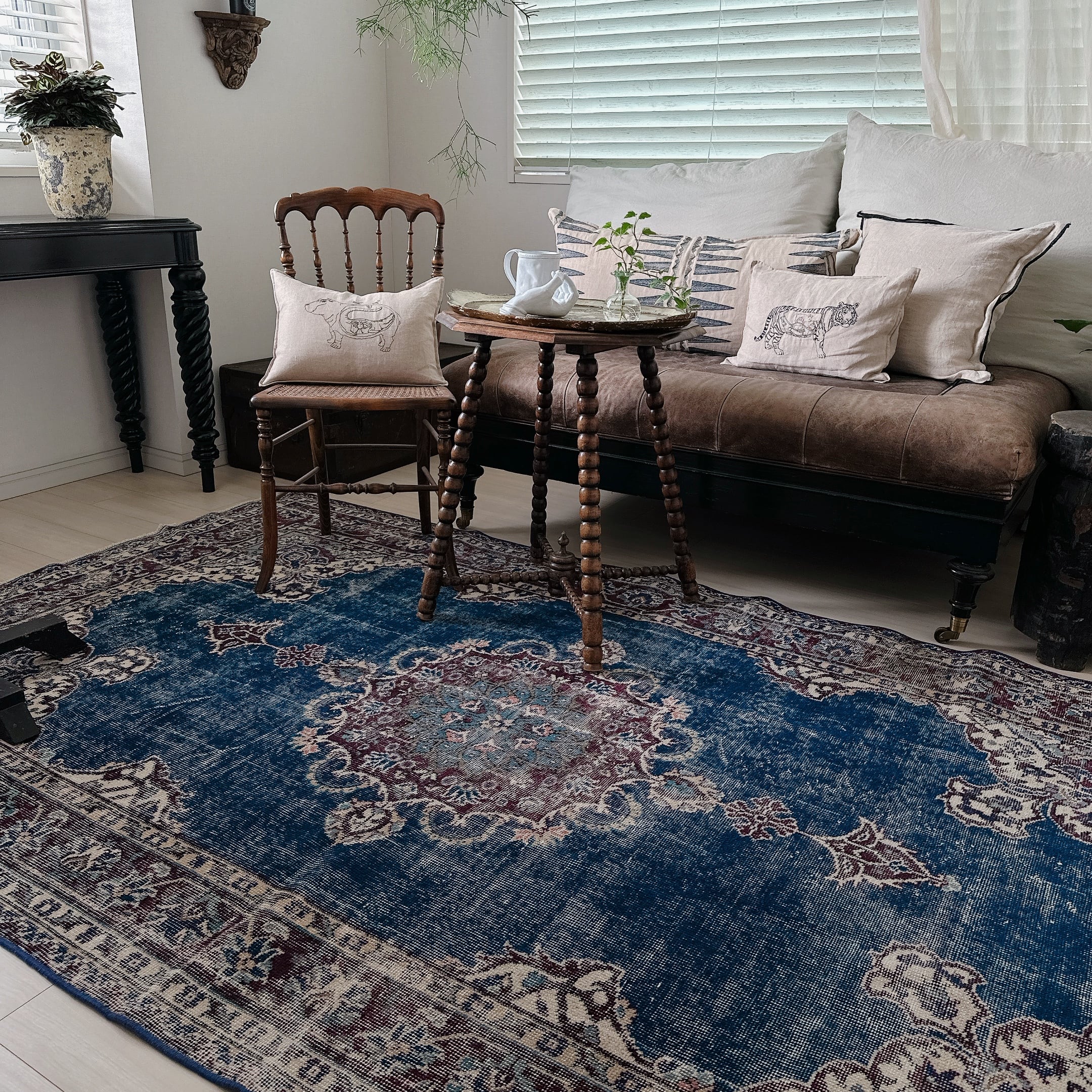 ・タグ:#トルコラグ #ヴィンテージラグ #イスパルタラグ #手織りラグ #一点もの #ネイビーラグ #クラシックインテリア #大判ラグ #アンティークラグ