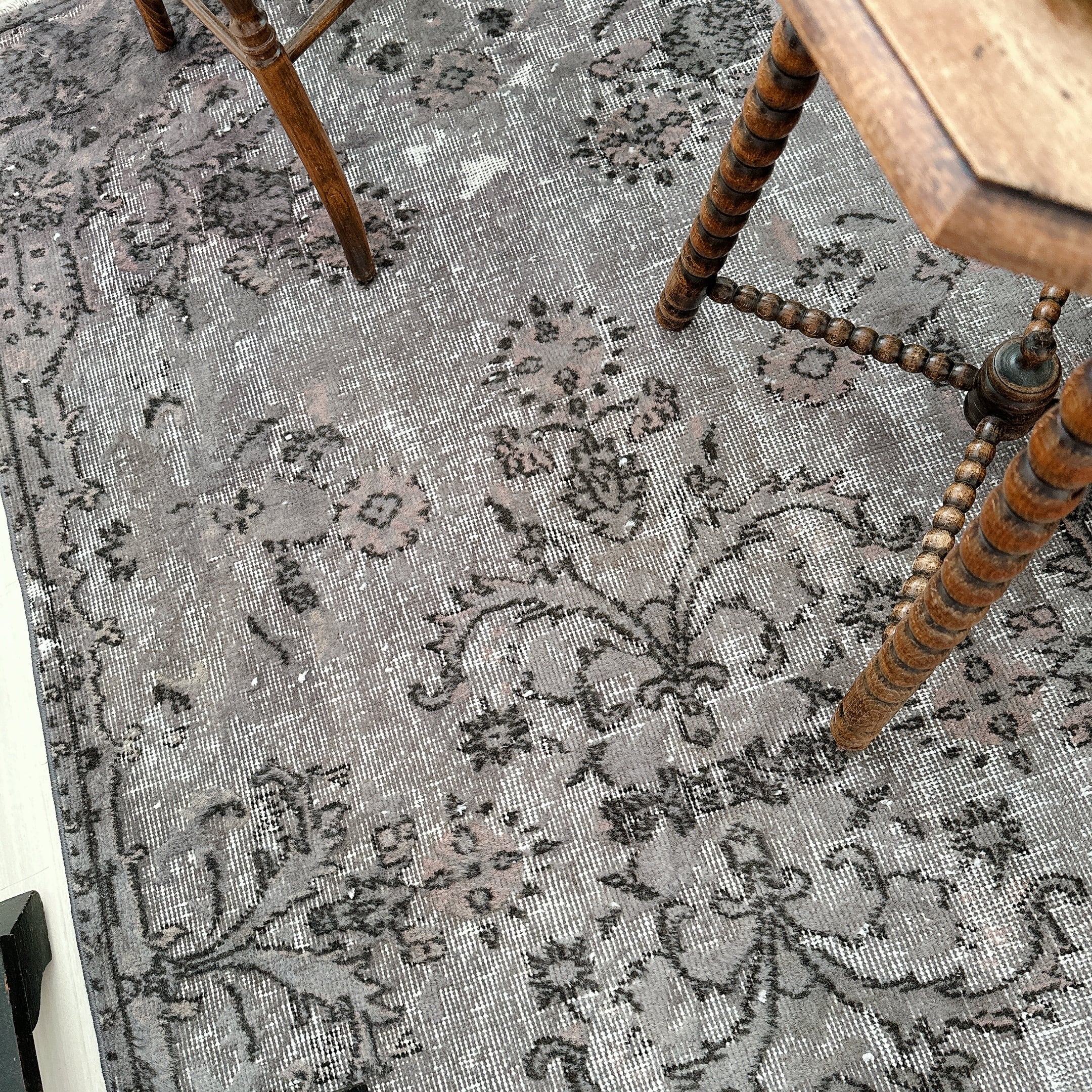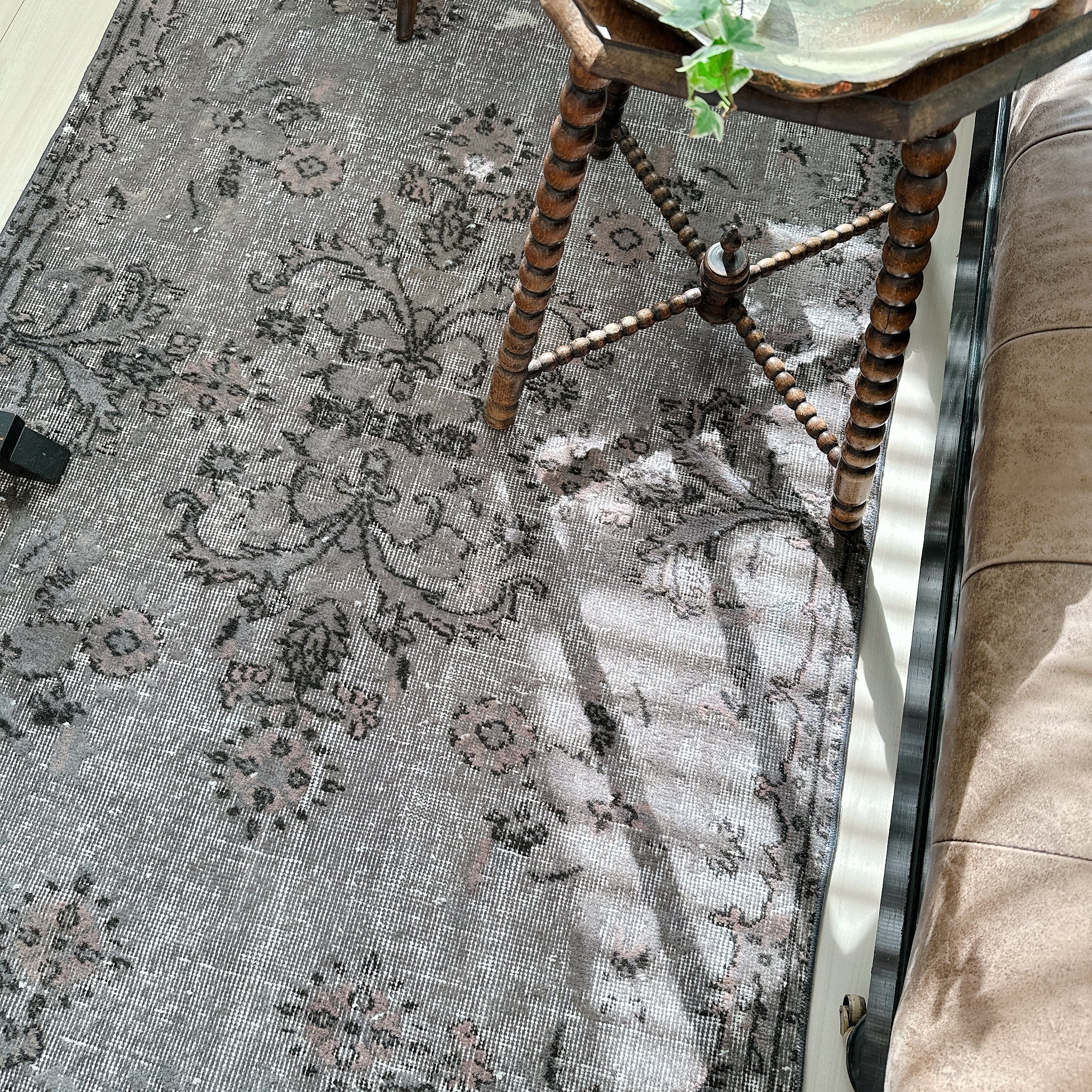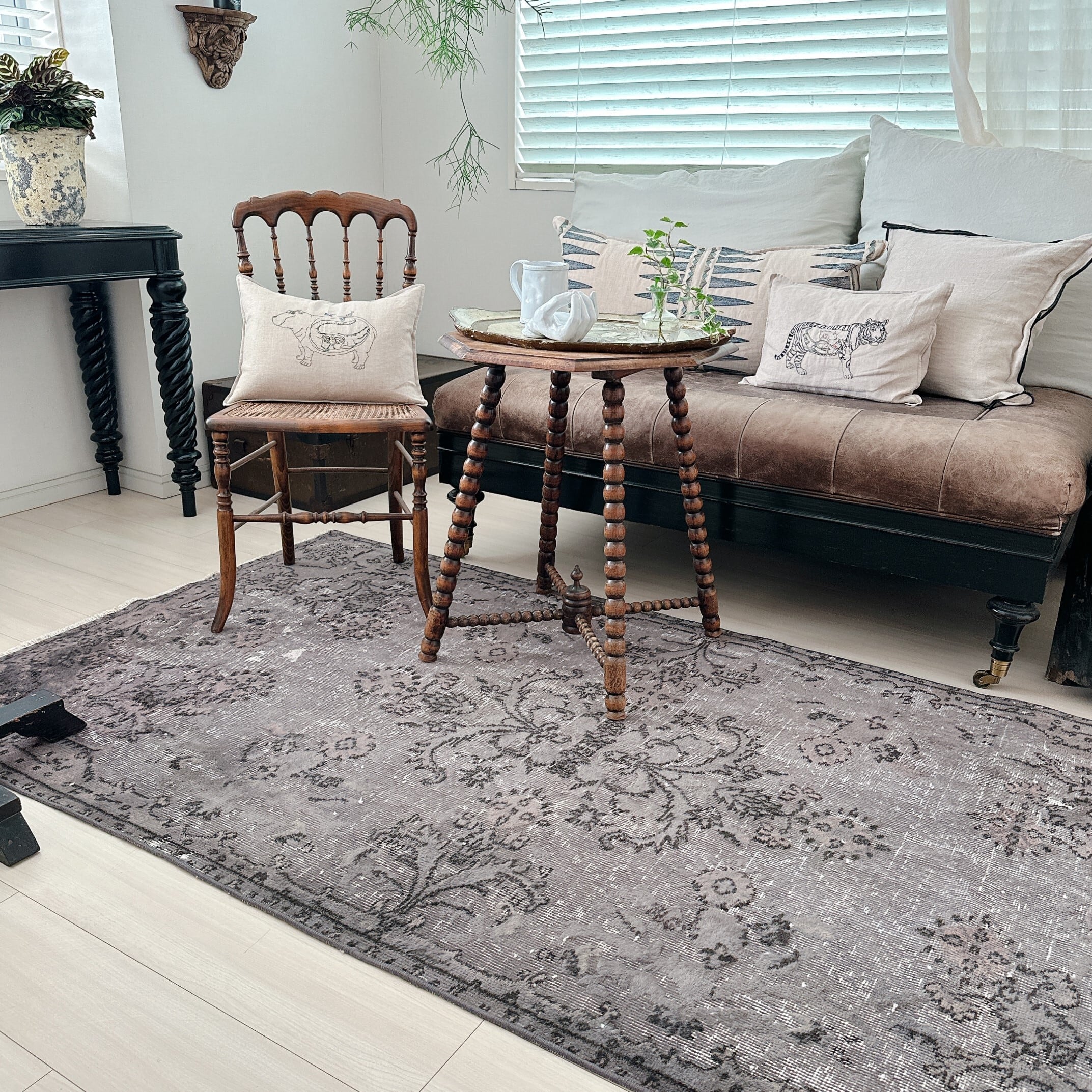 また、落ち着いたグレーのオーバーダイは、カラフルなヴィンテージカンタやモロッコラグなどの個性あるテキスタイルとも好相性。