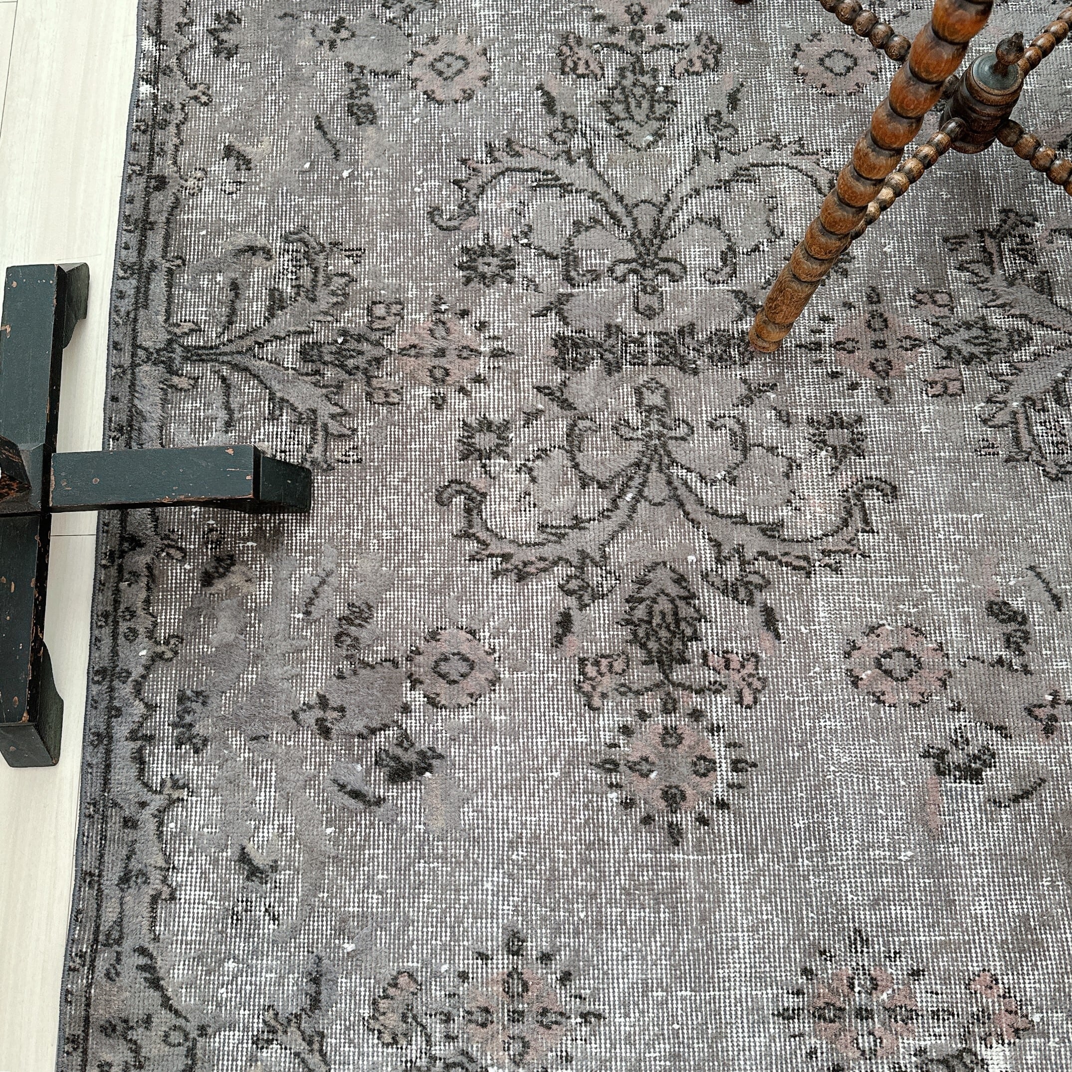 グレーの中に溶け込むように、元の模様に使われていたペールピンクがほのかに残り、全体にやわらかくフェミニンなニュアンスを添えています。