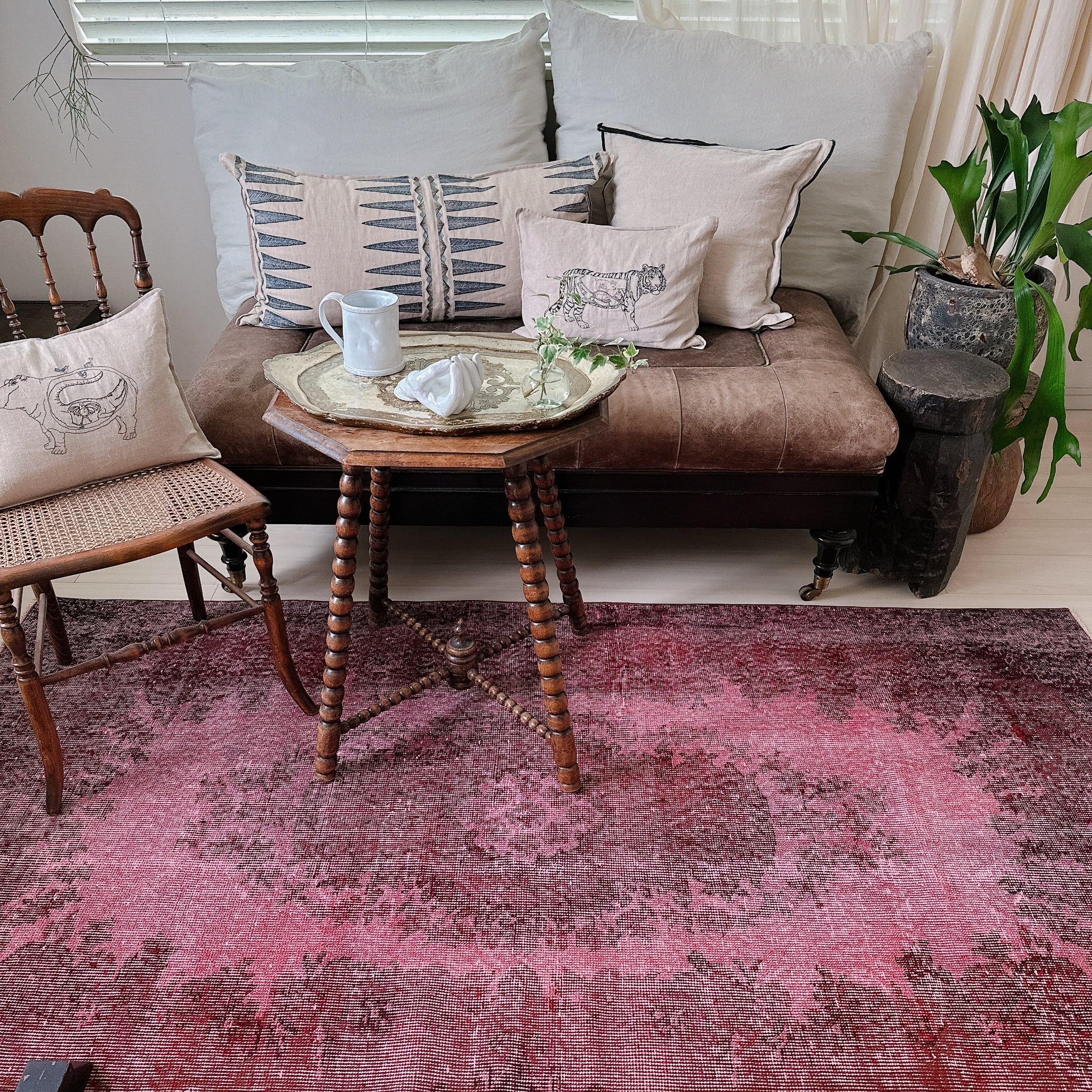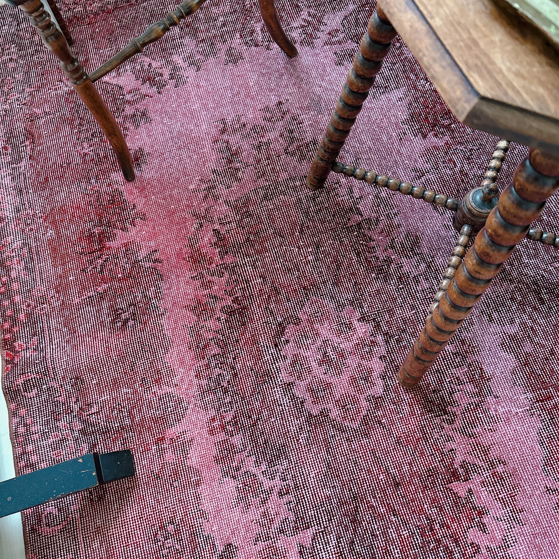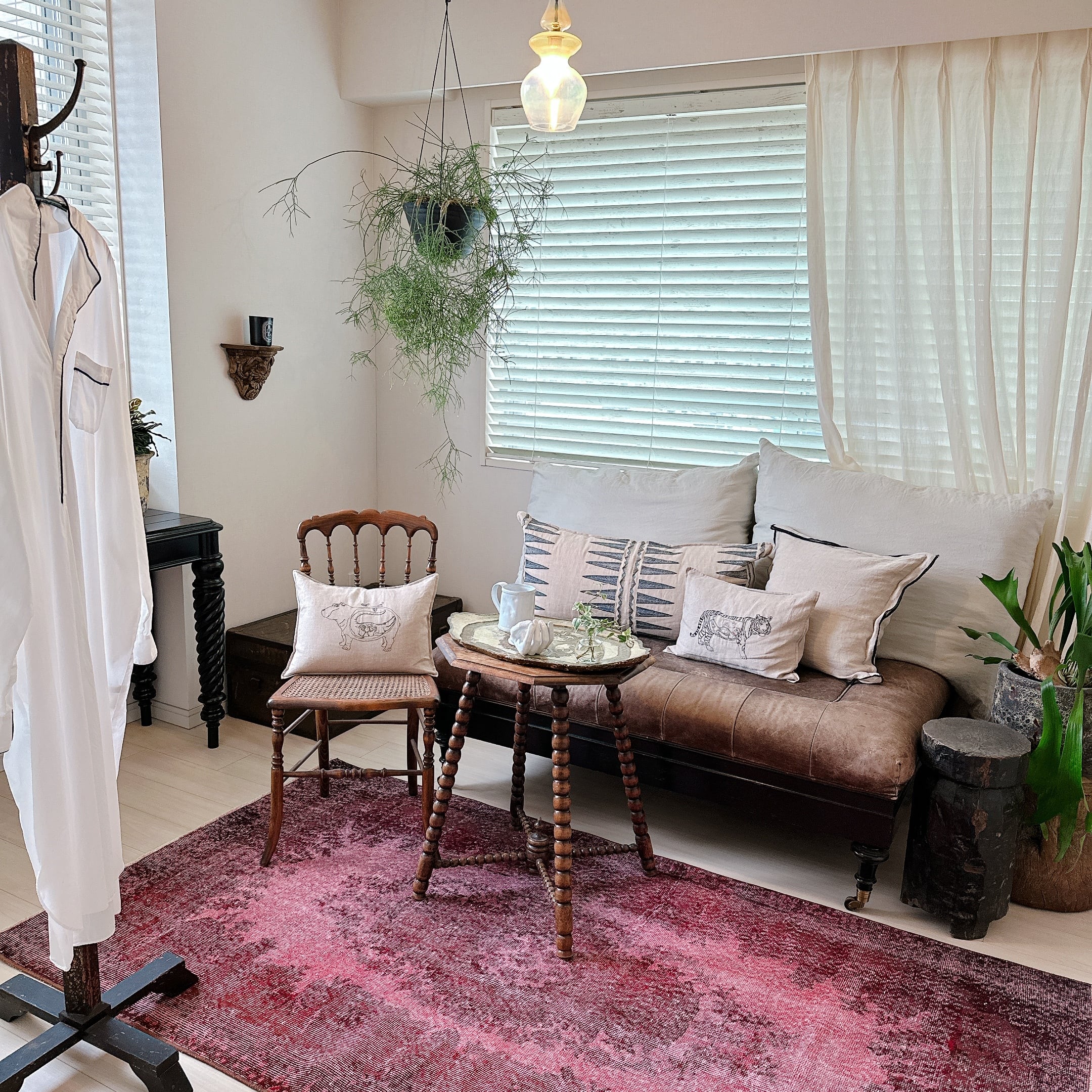 こちらは特に、ピンクトーンの中にボルドーやブラウンが絶妙に溶け込む染め上がりで、アンティーク家具やラスティックな空間、モダンインテリアにもよく調和します。