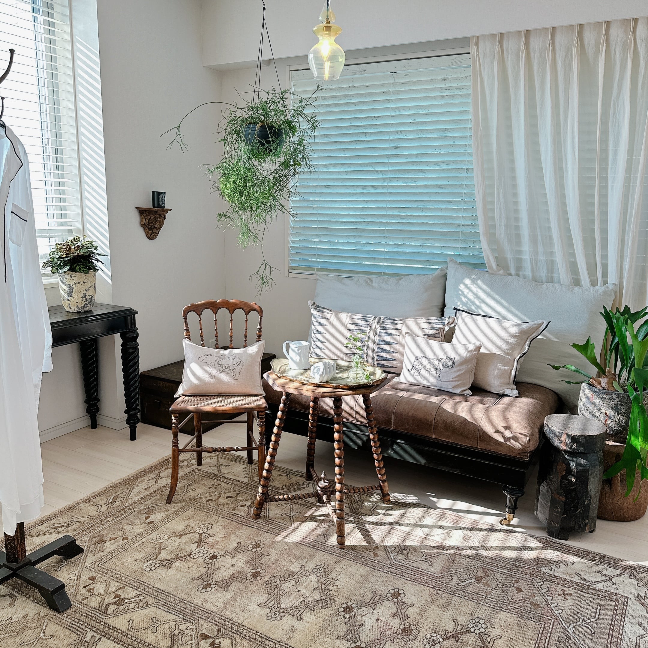 また、ナチュラルウッドやアイアン、リネンなど素材感のある家具と合わせることで、より深みのある空間を演出できます。