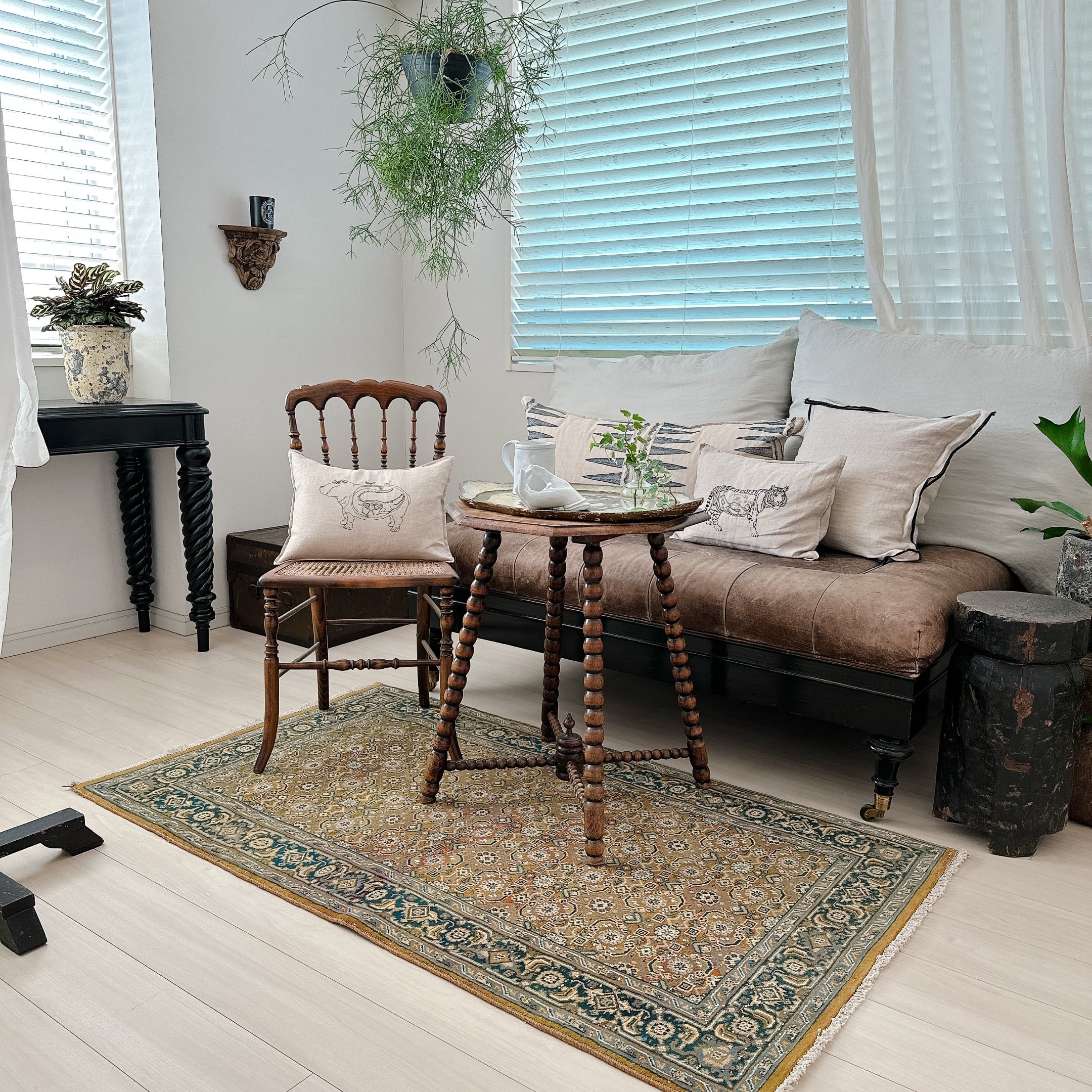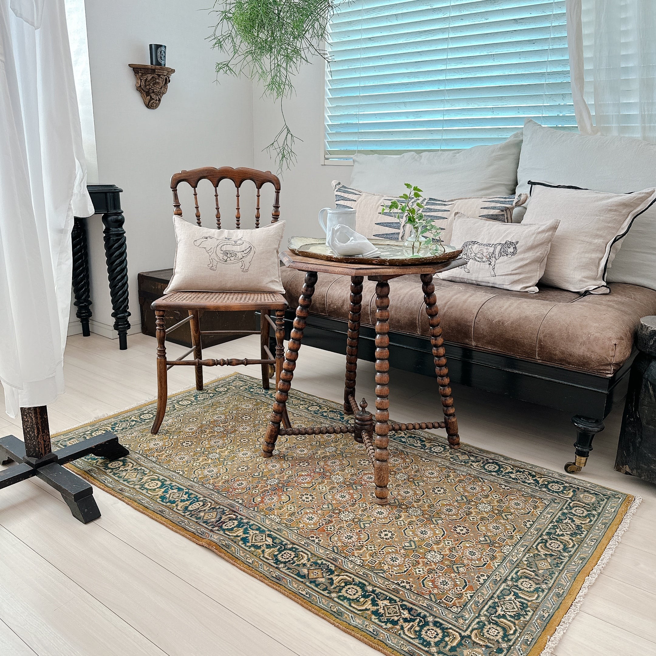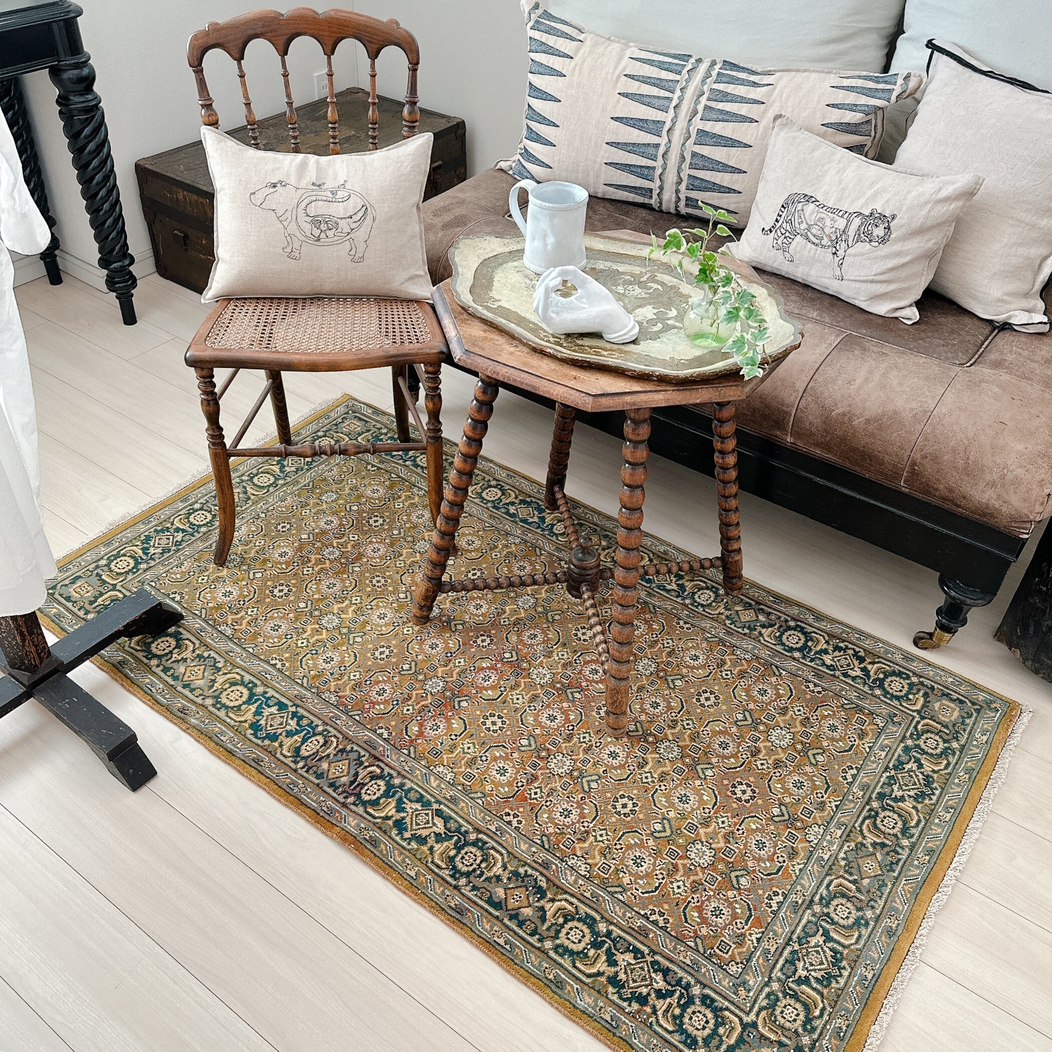 ヴィンテージ特有の柔らかな質感を保ちながら、パイルが程よく残っており、ふんわりとした踏み心地が魅力です。