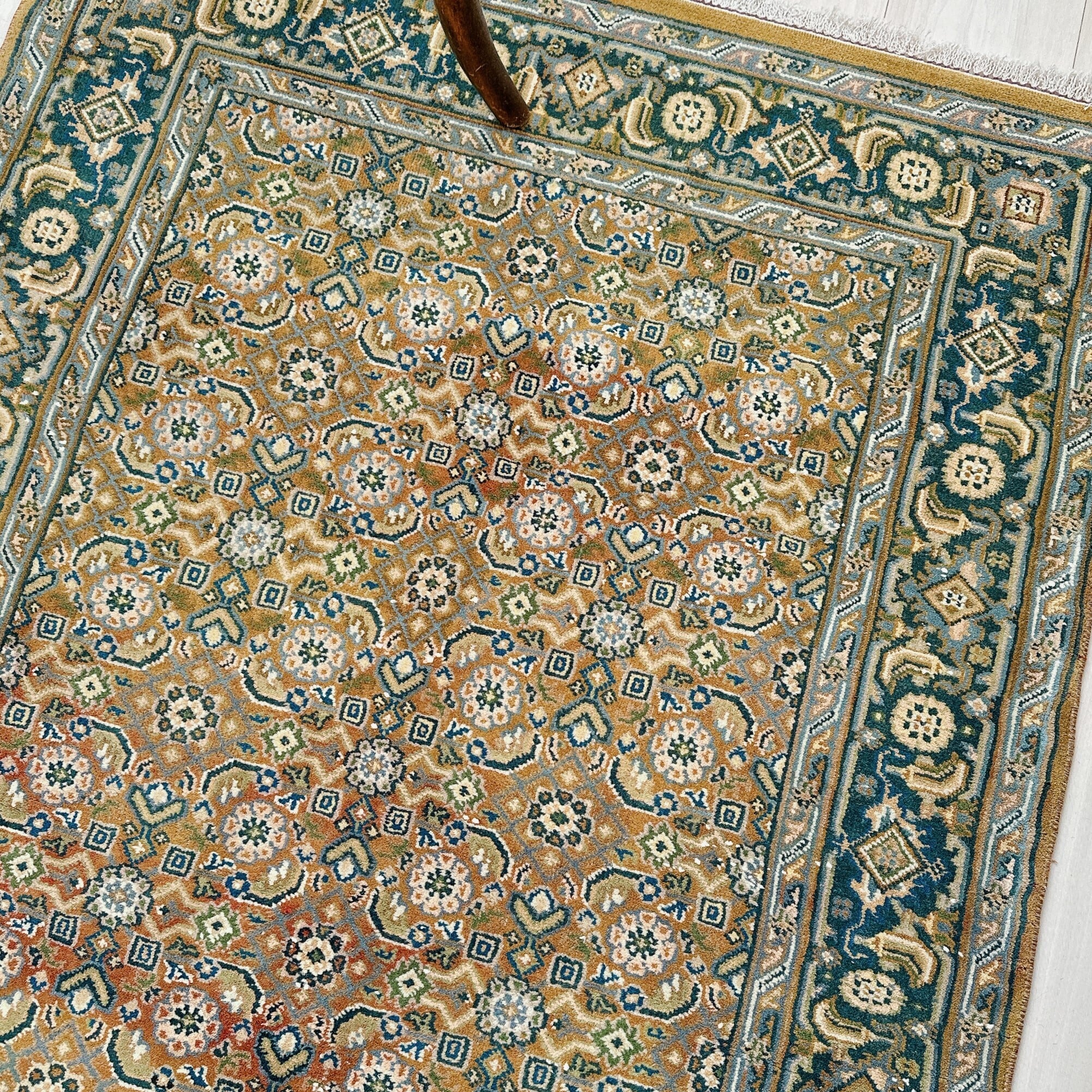 中央メダリオンを持たないオールオーバーパターン(総柄構成)のため、空間に自然と馴染み、どの角度から見ても均整の取れた美しさを楽しめます。