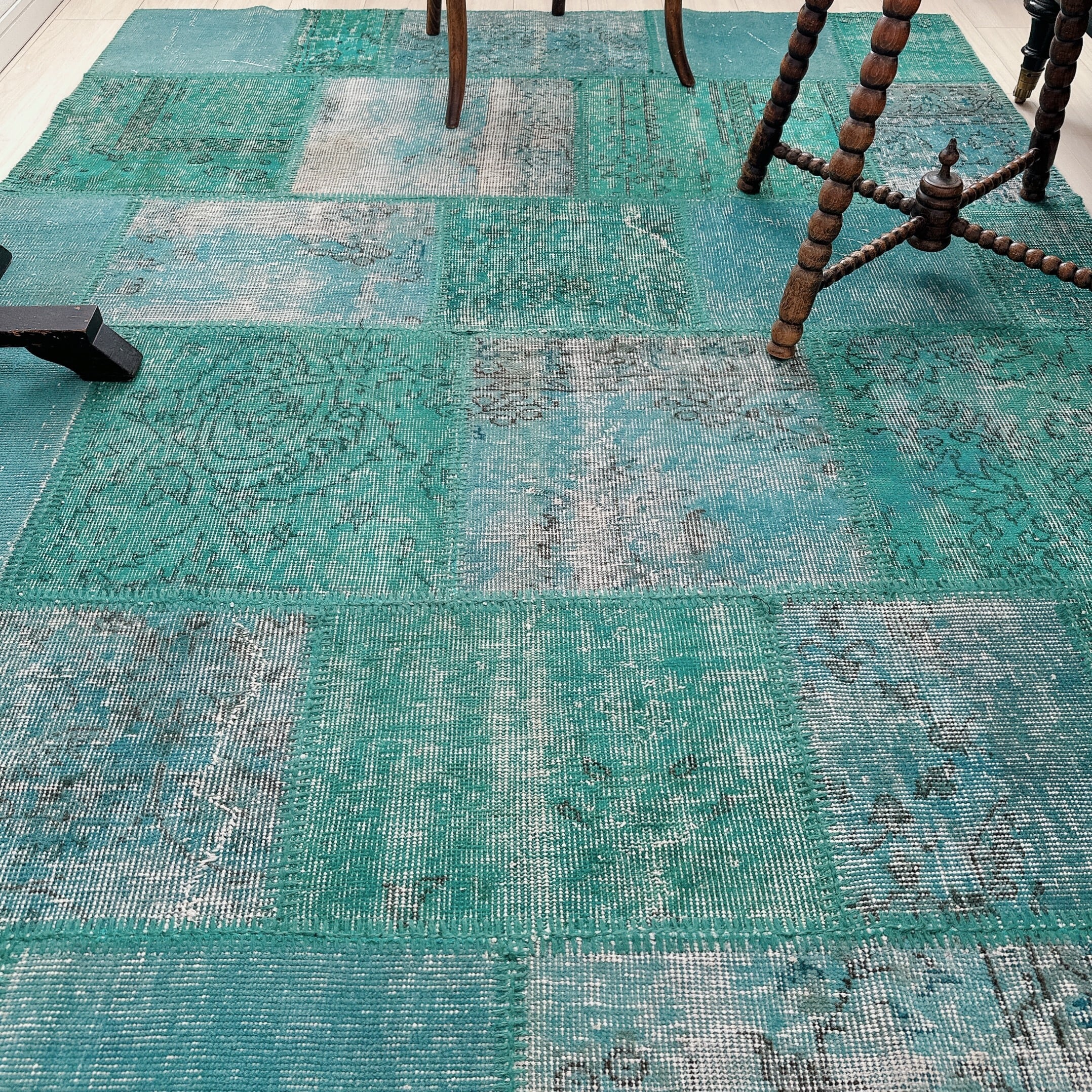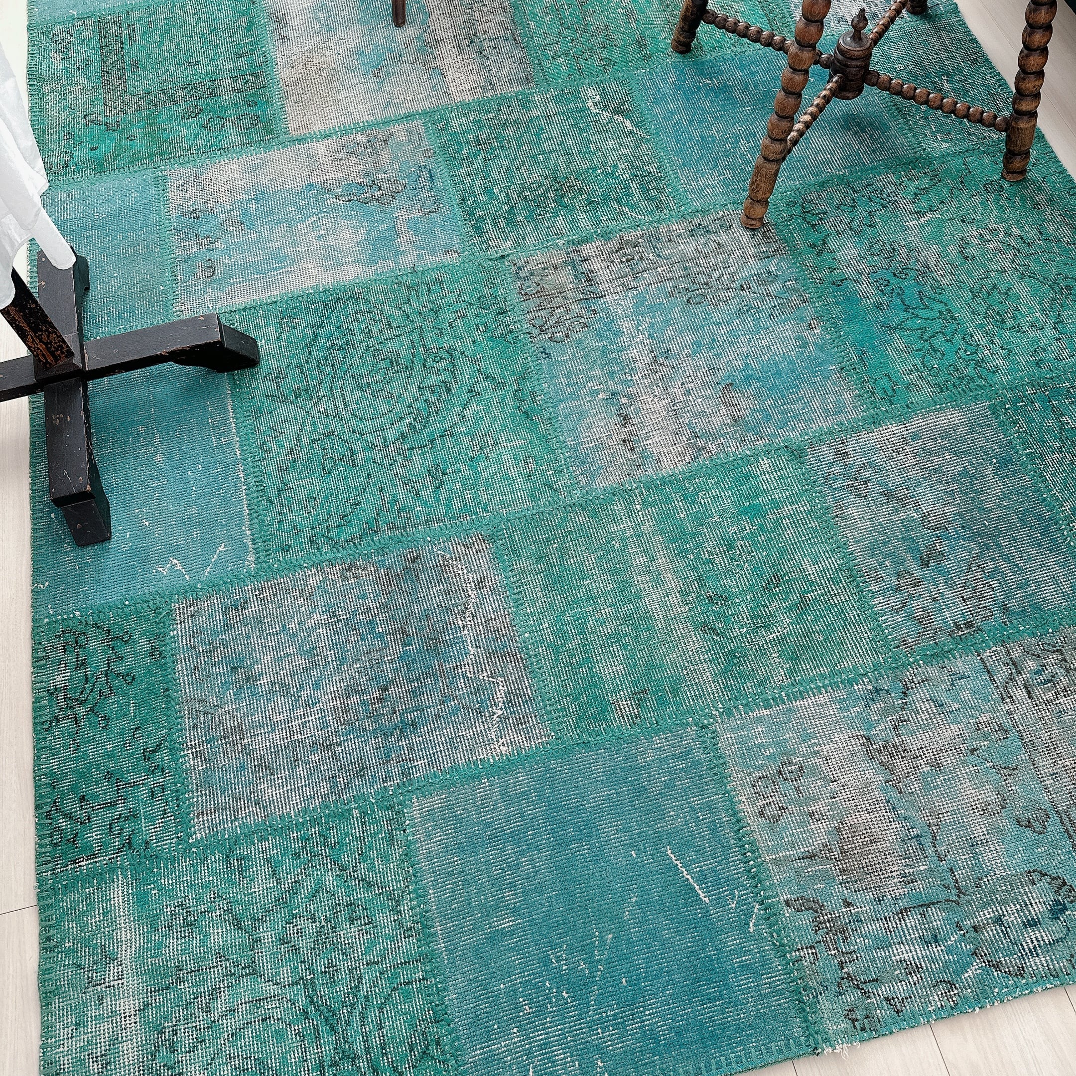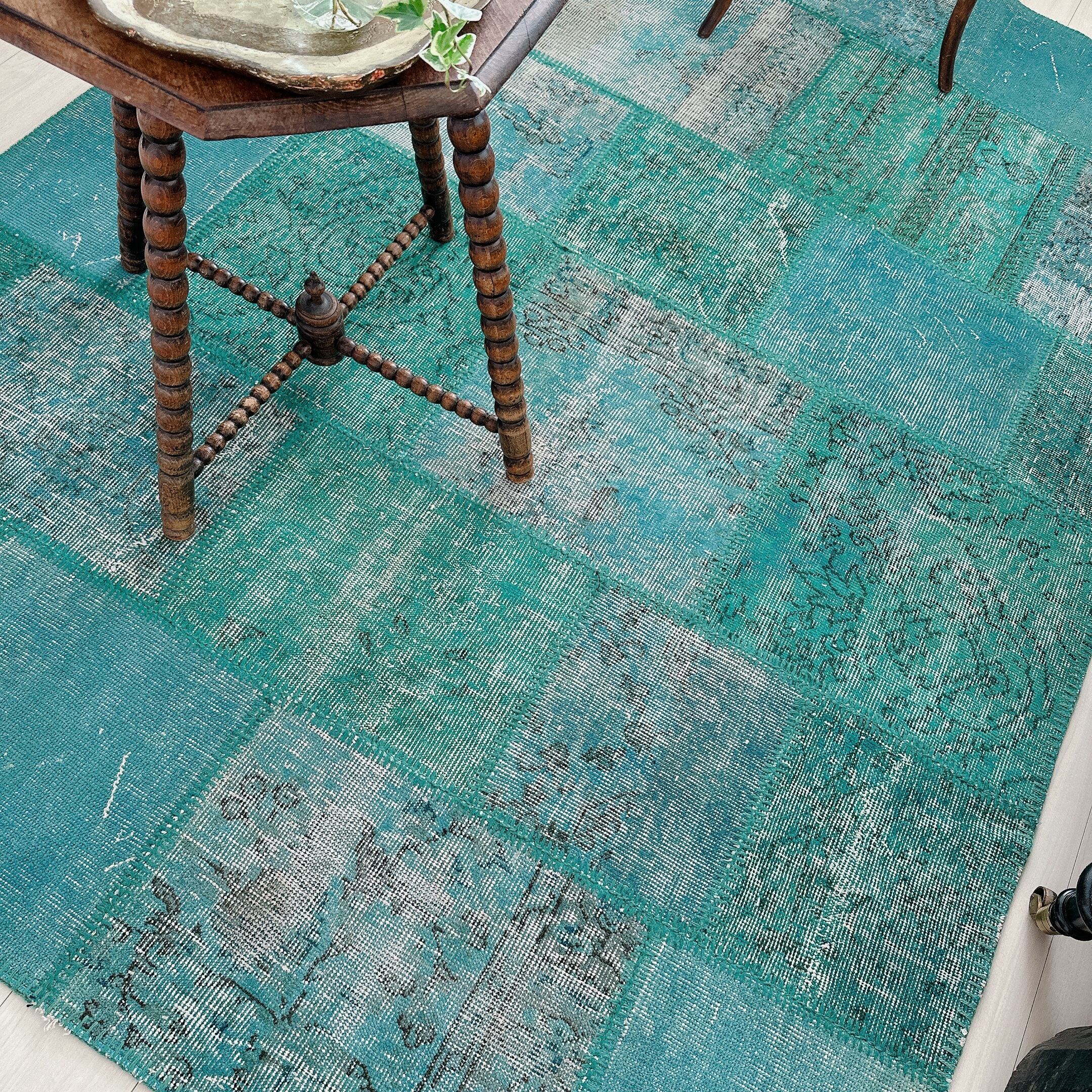 ・タグ:#トルコラグ #ヴィンテージラグ #イスパルタ #パッチワークラグ #オーバーダイ #手織りラグ #一点もの #ターコイズブルー #モダンインテリア