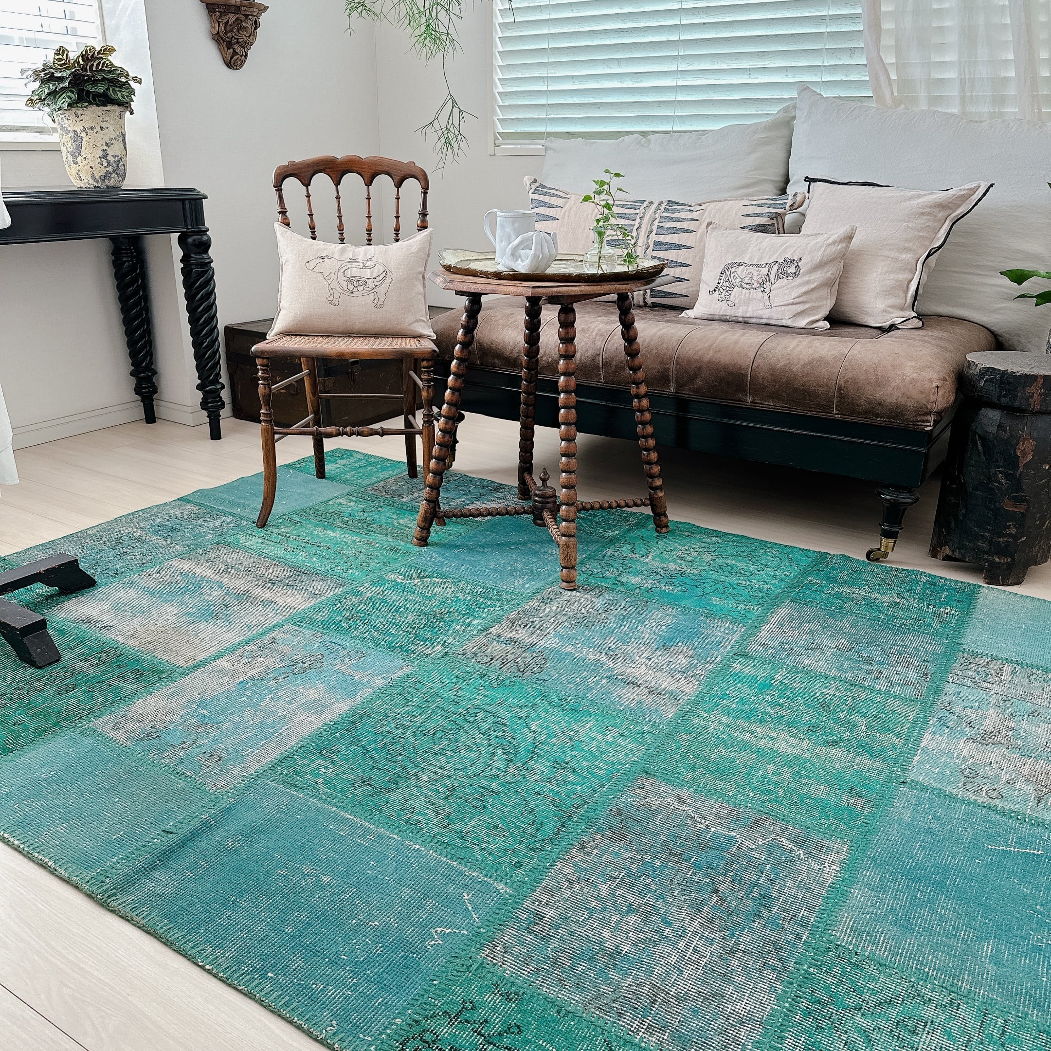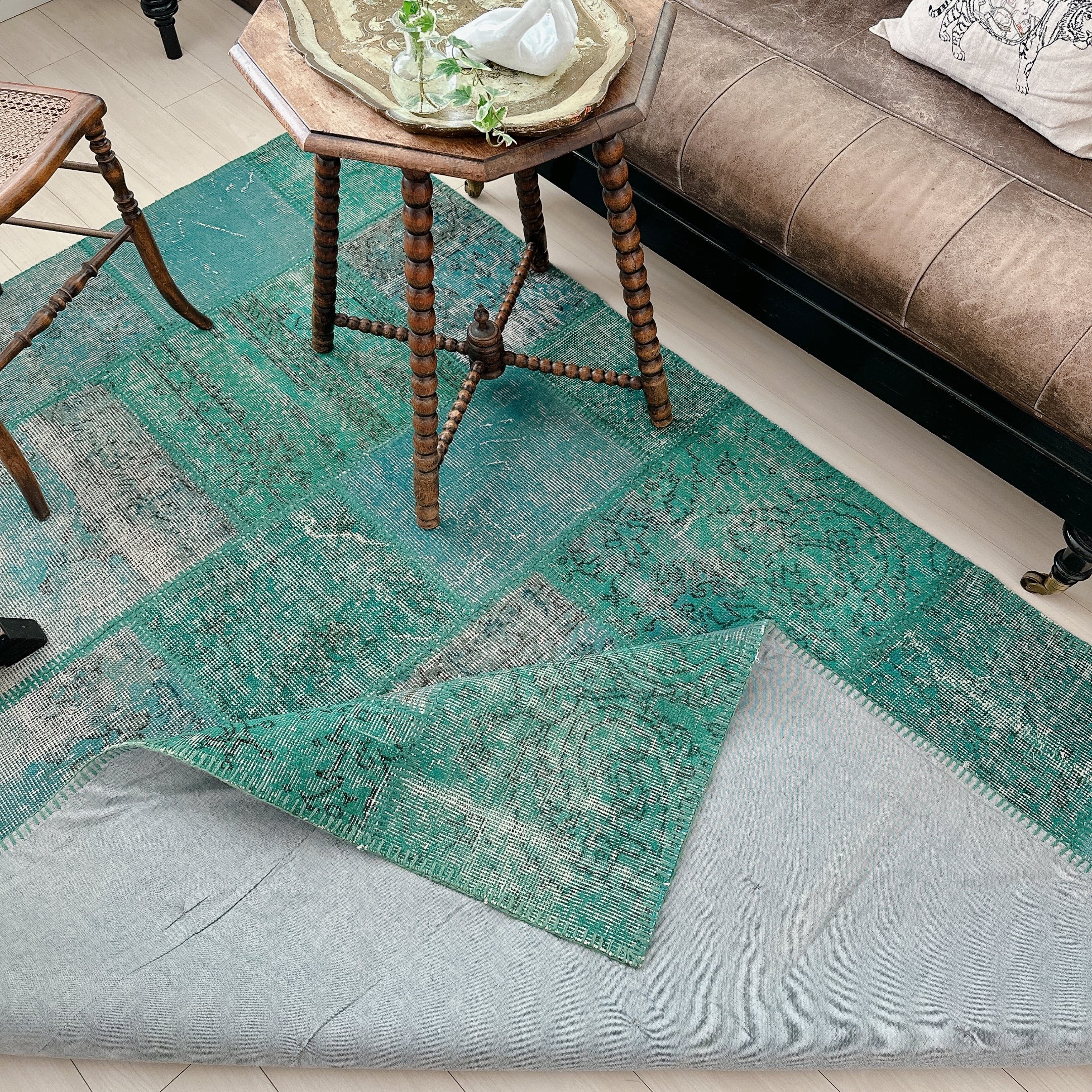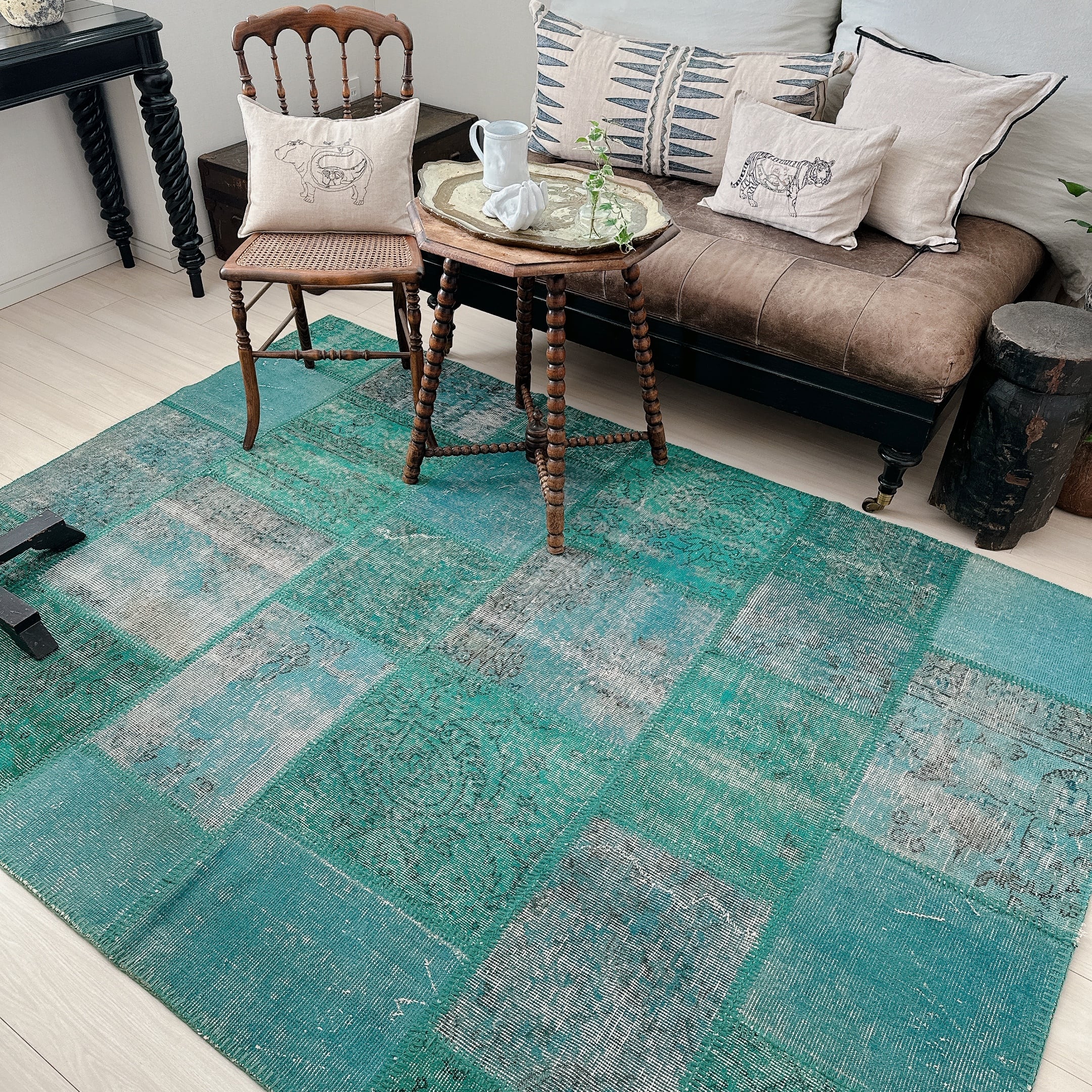 ・タグ:#トルコラグ #ヴィンテージラグ #イスパルタ #パッチワークラグ #オーバーダイ #手織りラグ #一点もの #ターコイズブルー #モダンインテリア
