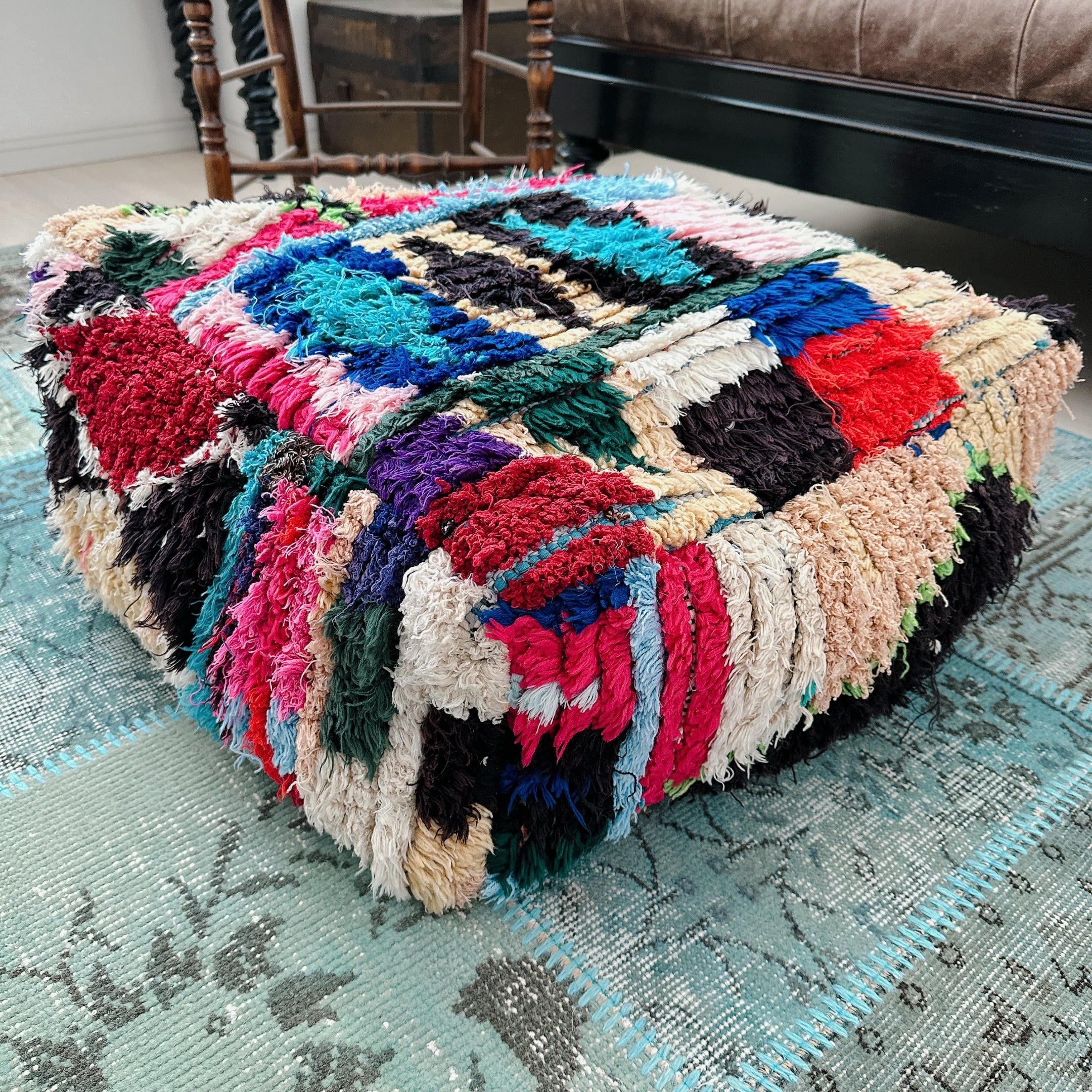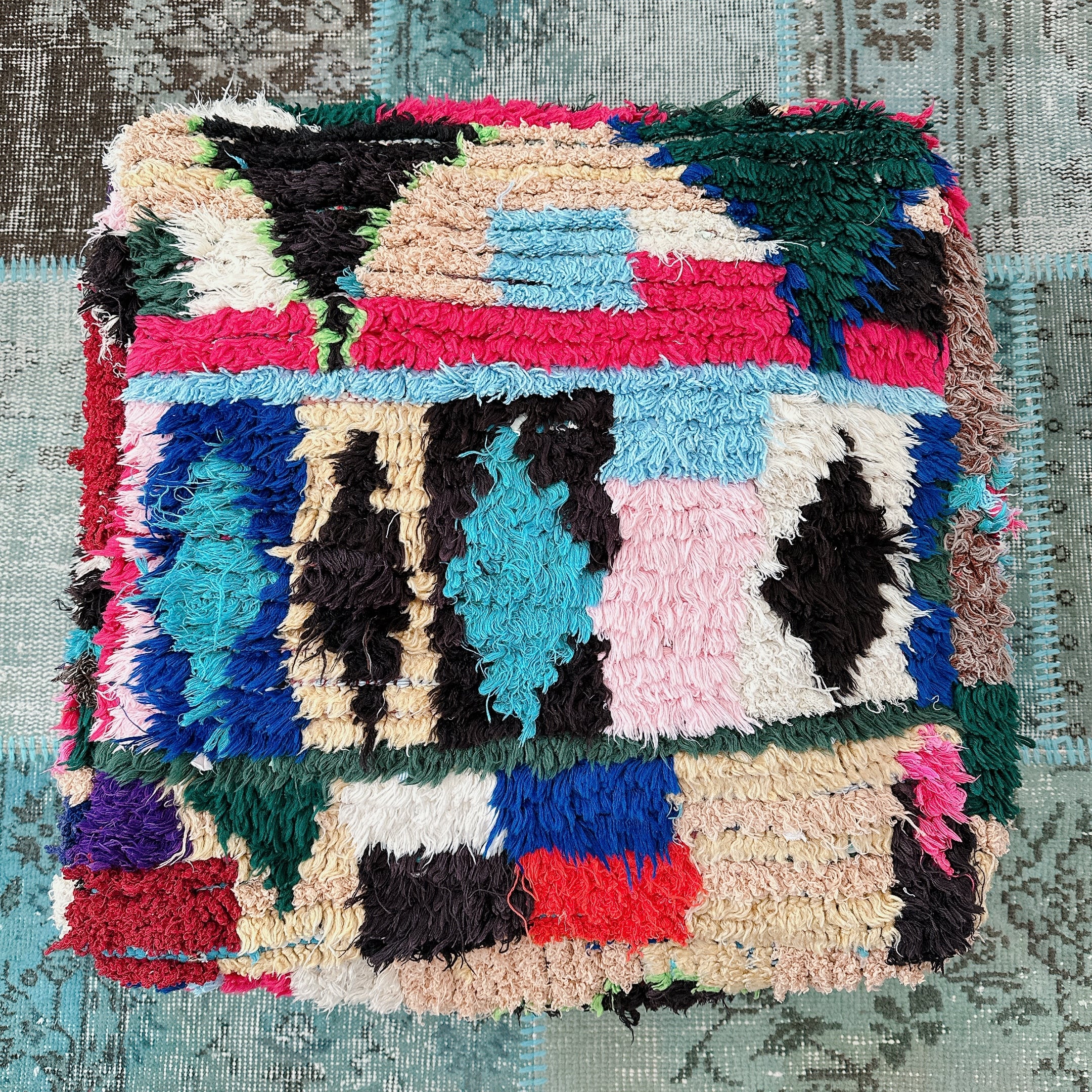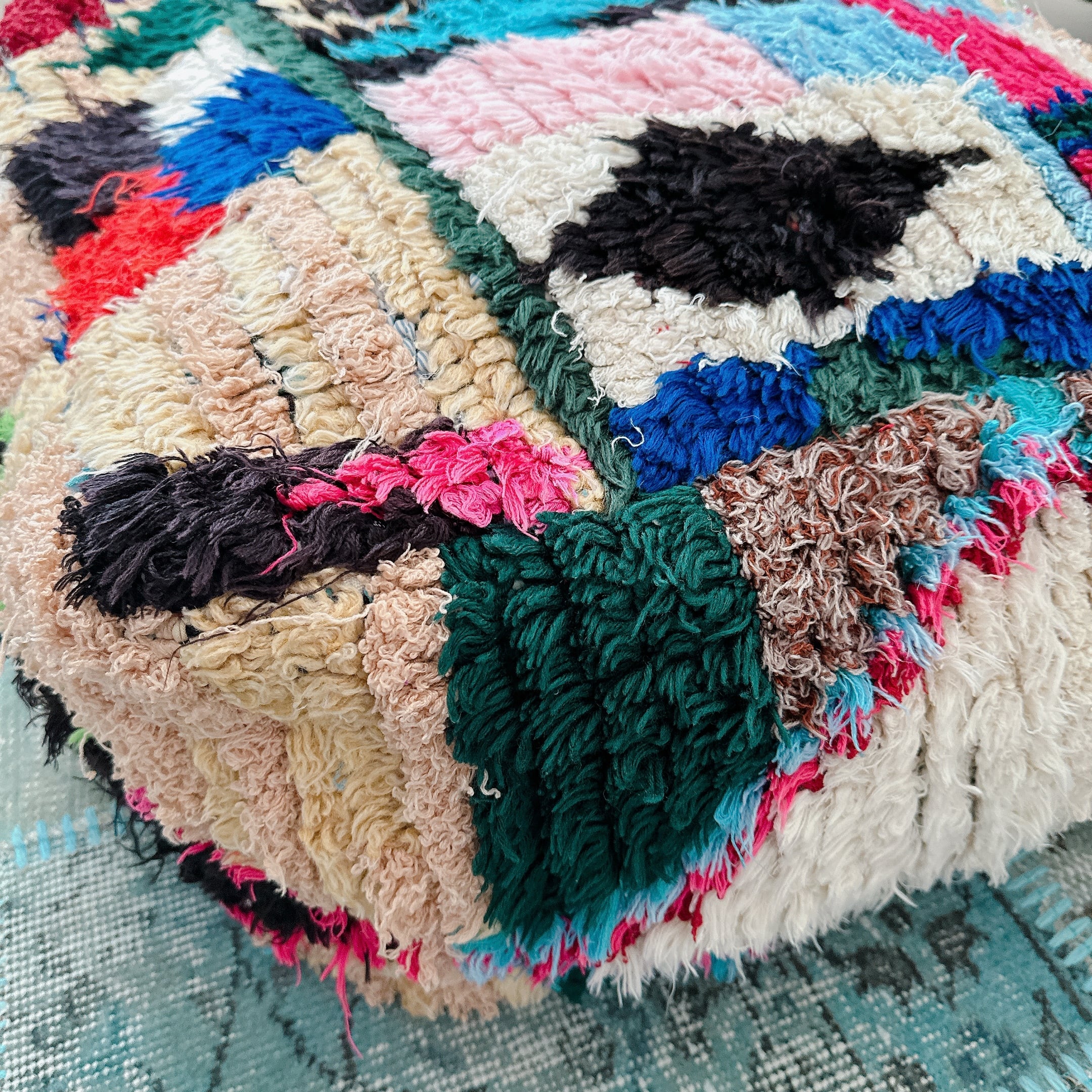 モロッコ・ブジャド地方で織られたボシャルウィットラグをリメイクしたプフ(フロアクッションカバー)です。