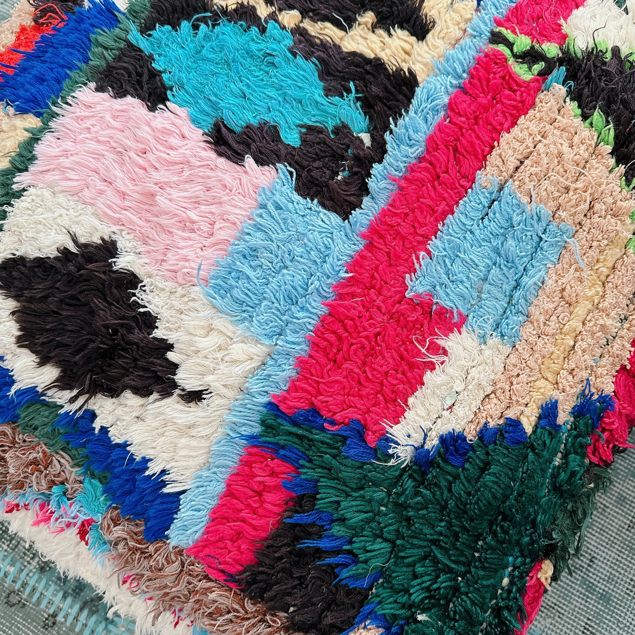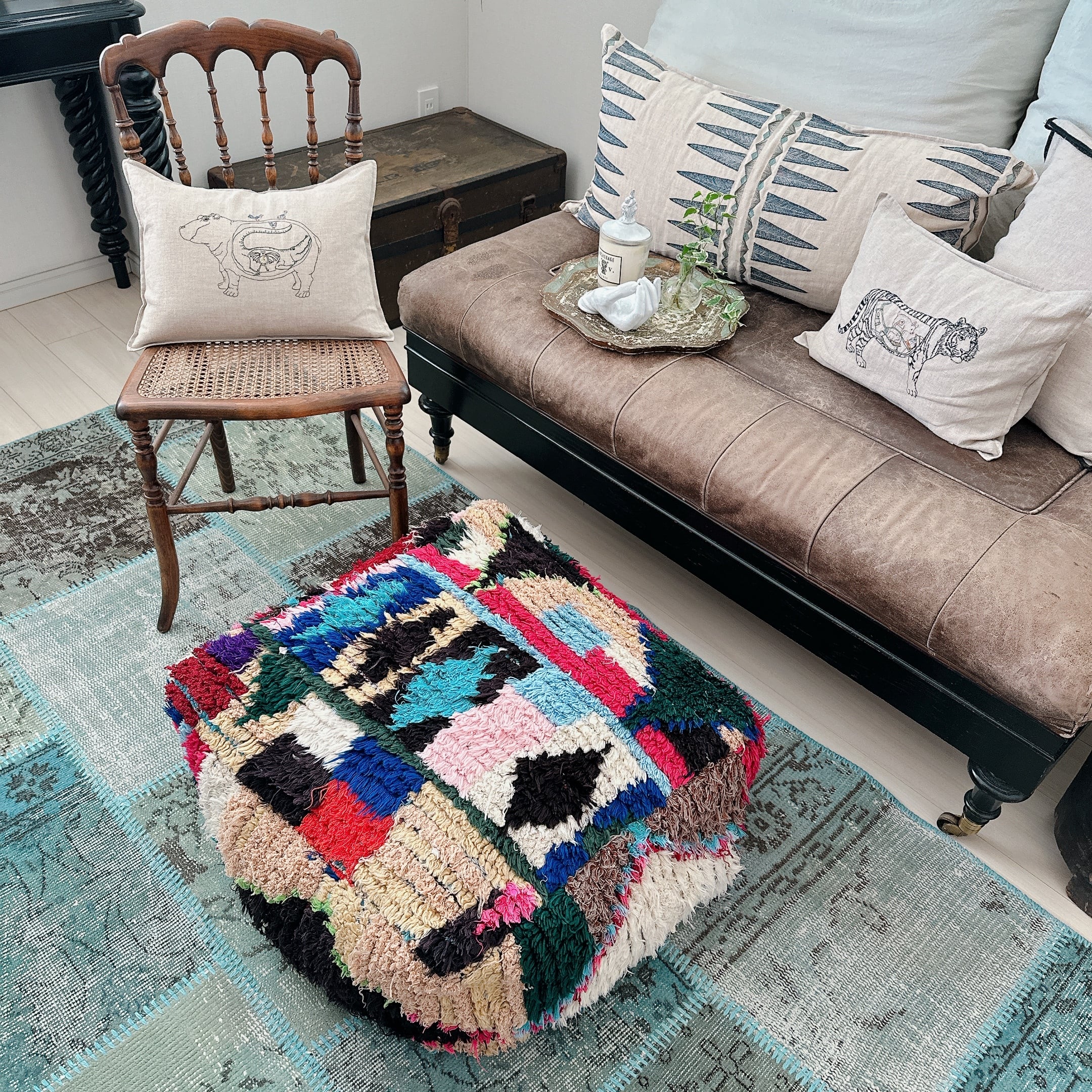 ・タグ:#モロッコプフ #Boucherouite #ブジャドラグ #リメイク #フロアクッション #ヴィンテージファブリック #MABRIセレクト #一点もの