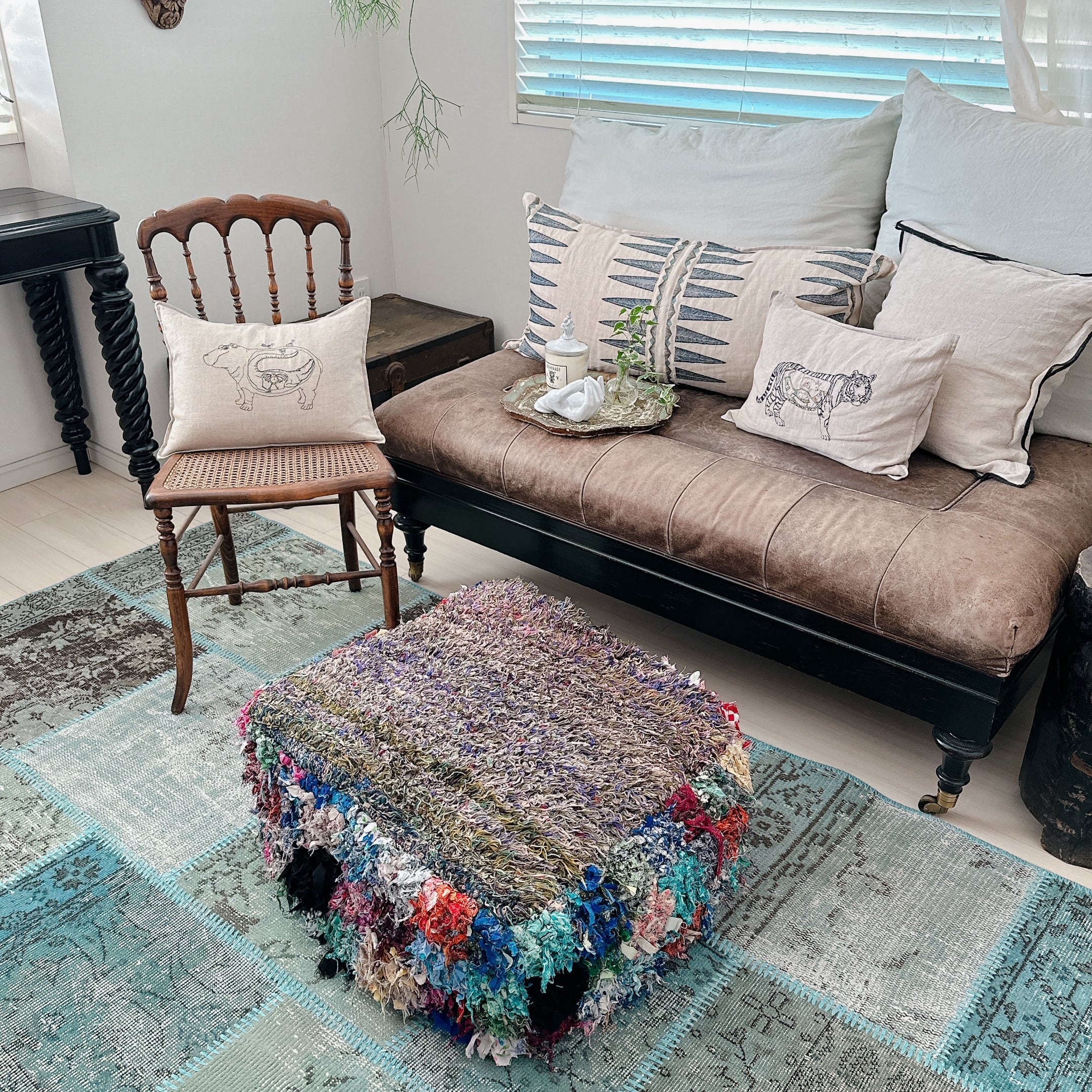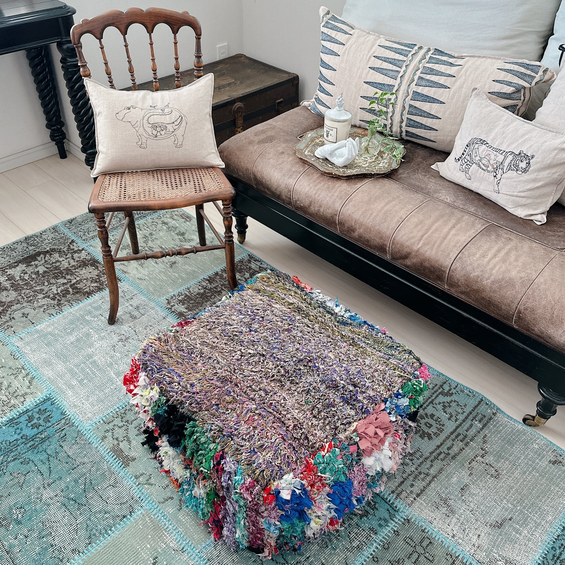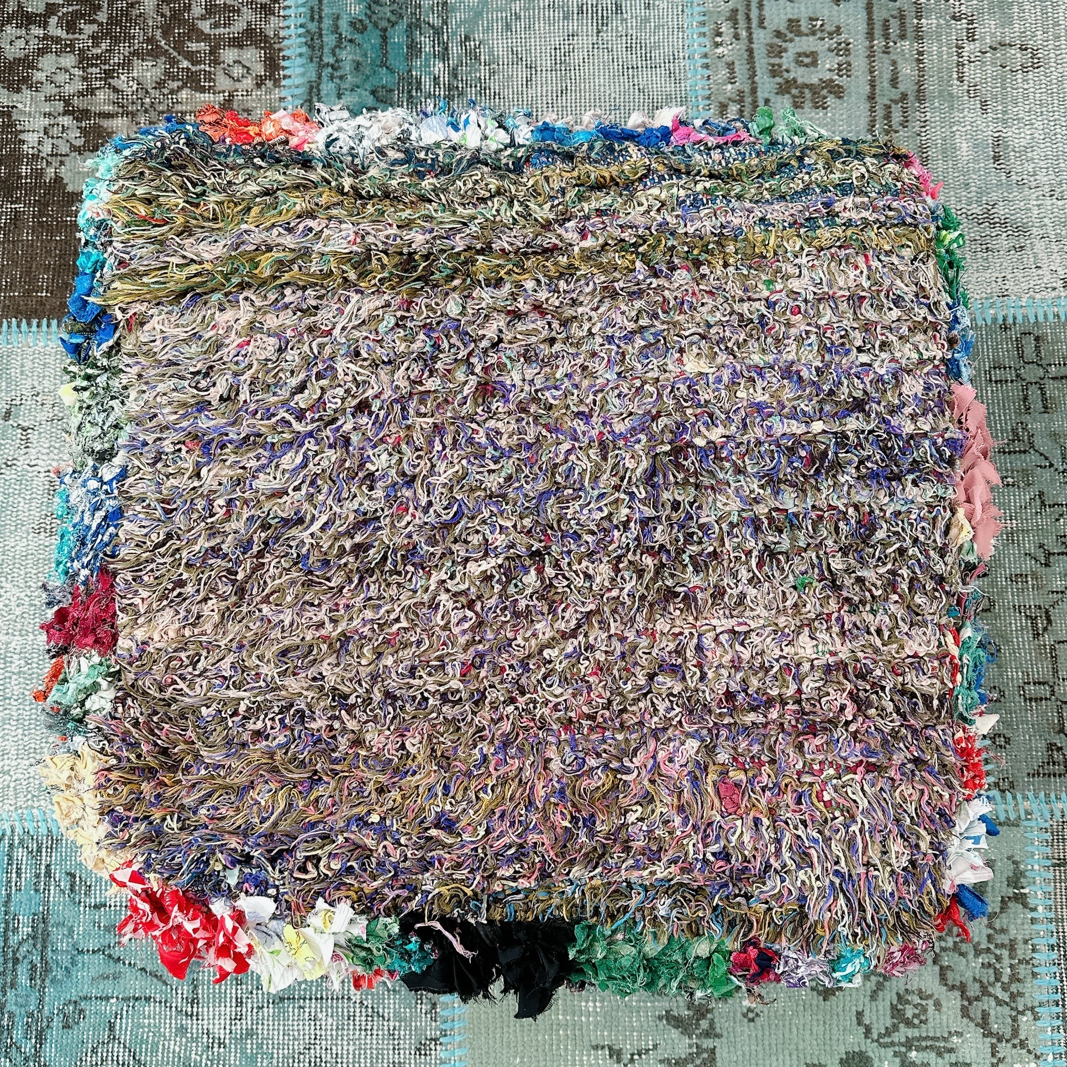・タグ:#モロッコプフ #Boucherouite #ブジャドラグ #リメイク #フロアクッション #ヴィンテージファブリック #MABRIセレクト #一点もの