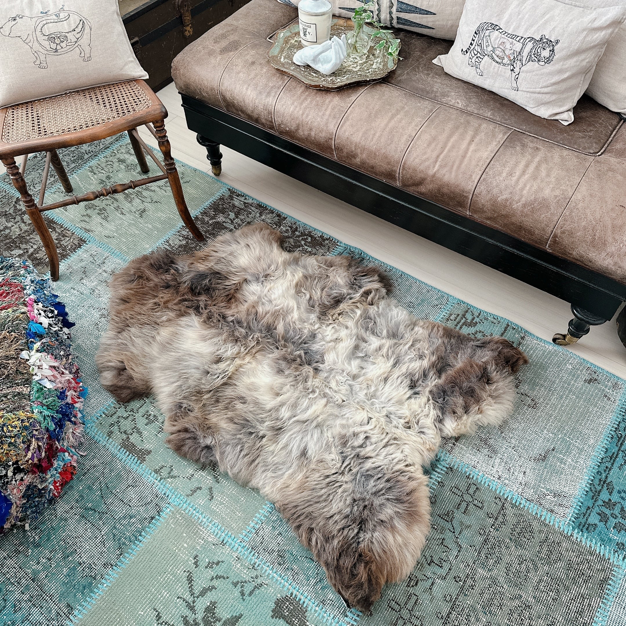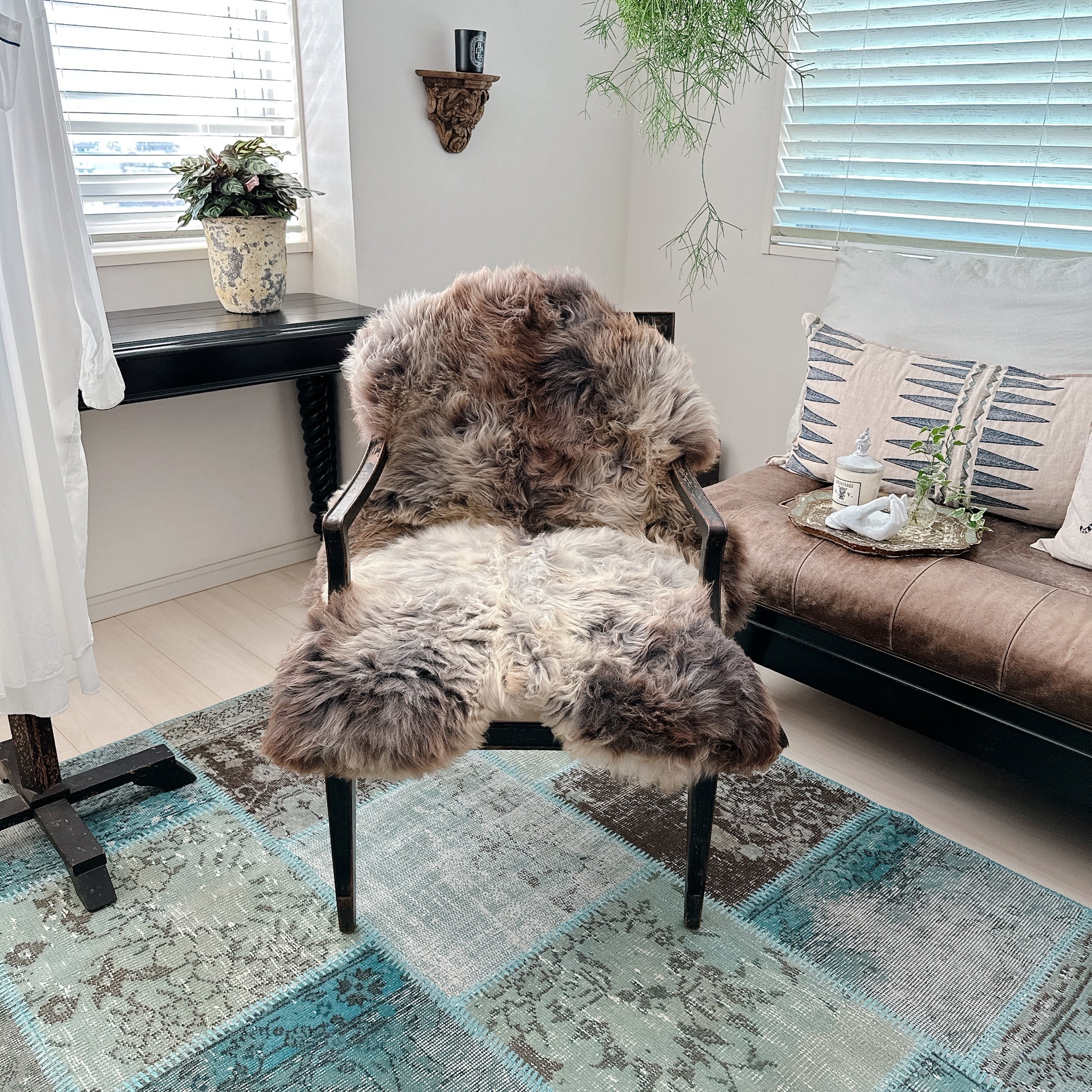 また、このラグは毛皮を取ることを目的として作られたものではなく、食肉や乳製品、羊毛などの生産に使われた後、または寿命などの理由で亡くなった羊の皮を再利用し、最後の加工品として仕立てられたものです。