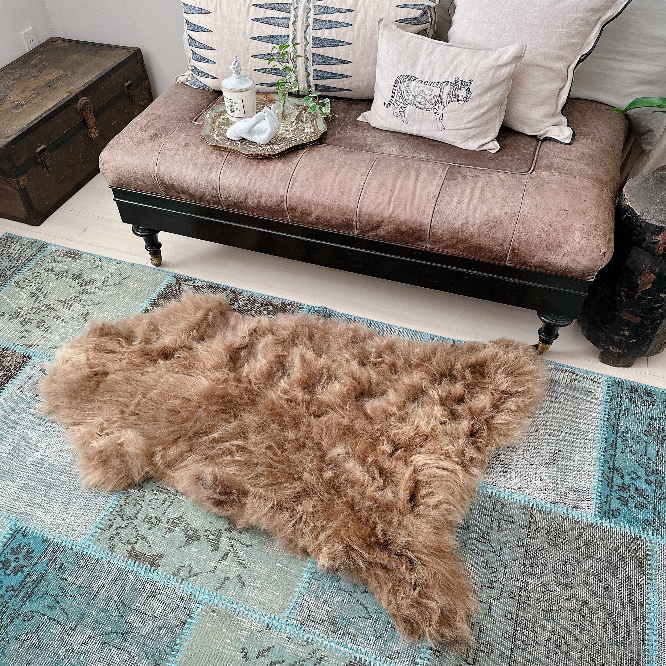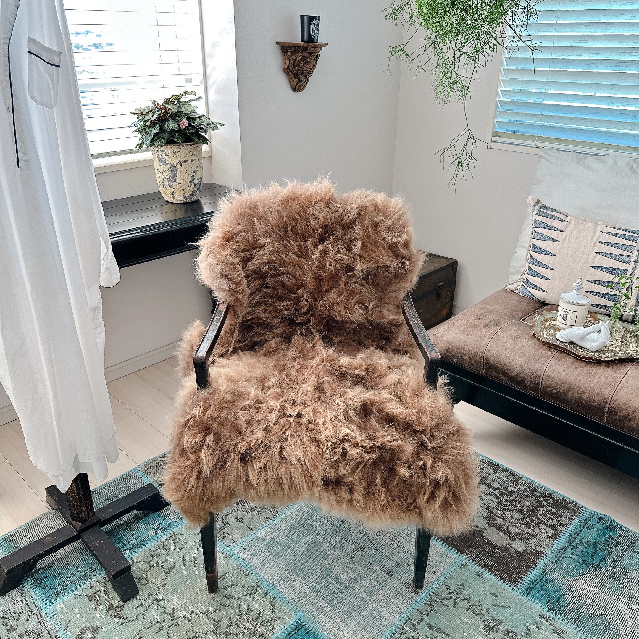 ポーランドの寒冷地で育った羊の毛皮を使用した、天然ムートンラグ。