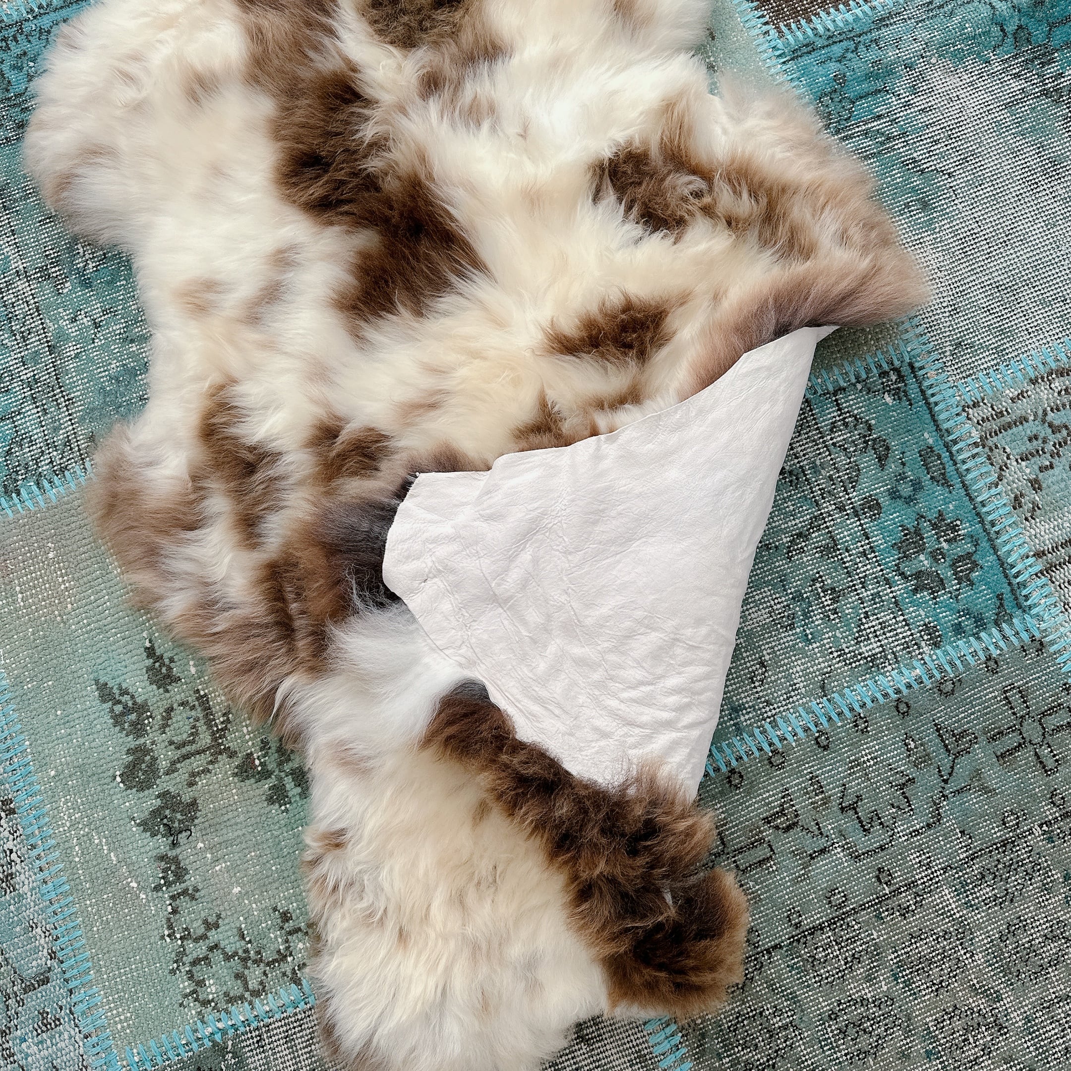 また、このラグは毛皮を取ることを目的として作られたものではなく、食肉や乳製品、羊毛などの生産に使われた後、または寿命などの理由で亡くなった羊の皮を再利用し、最後の加工品として仕立てられたものです。