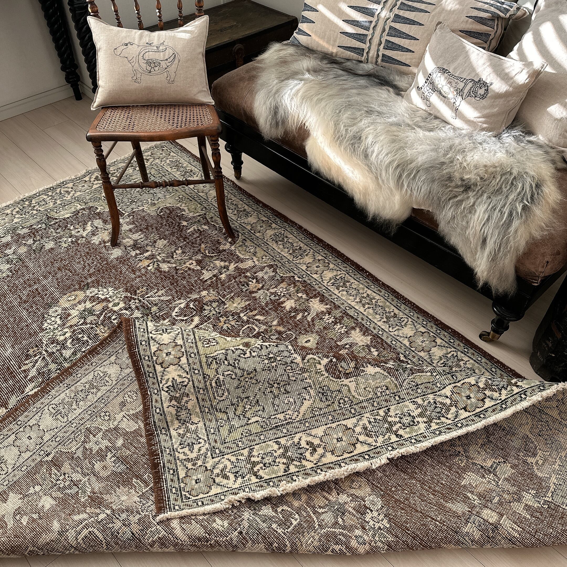 緻密な花唐草文様を基調に、長い年月を経た織りの表情とウォッシュ加工がほどよく調和した、1970年代のイスパルタラグ。