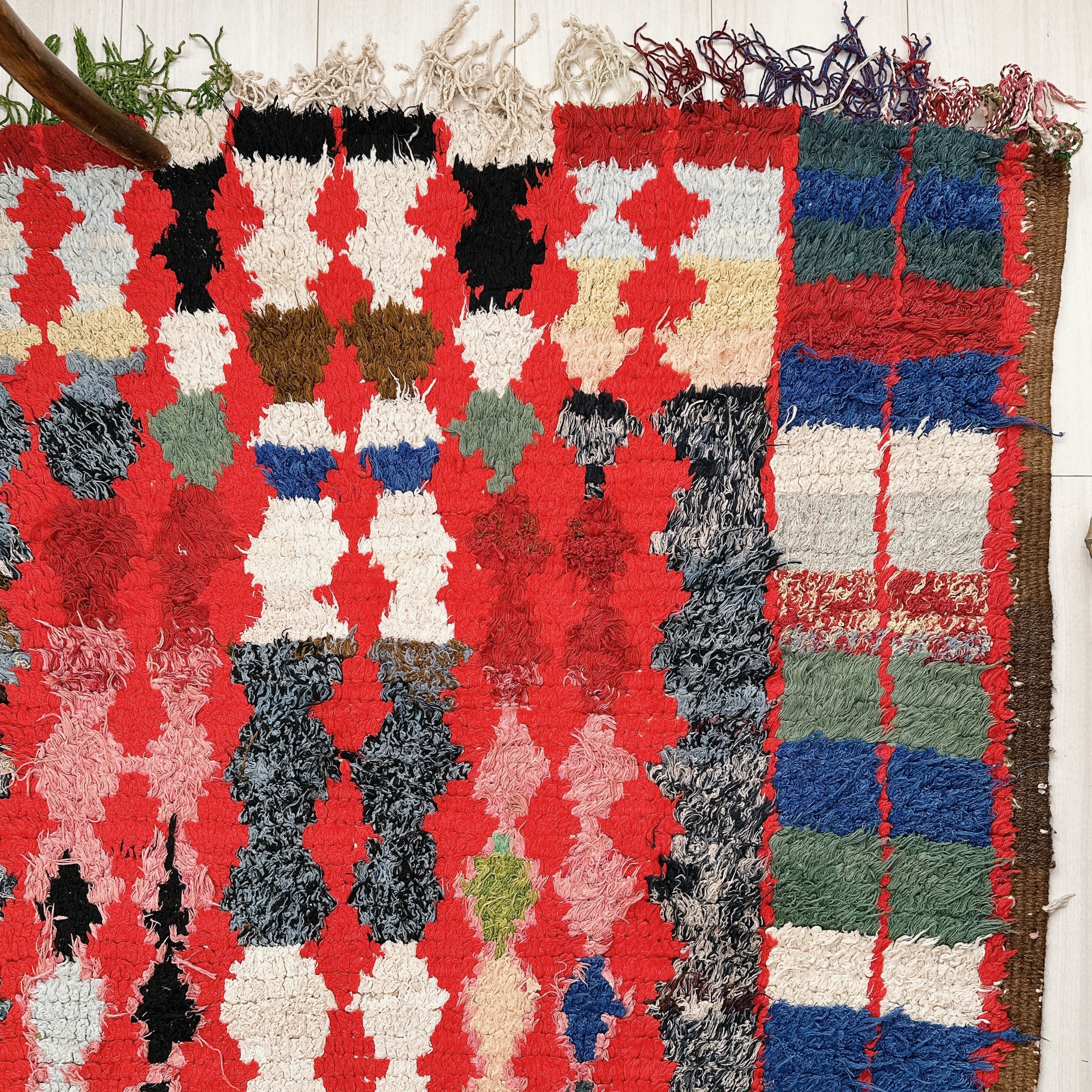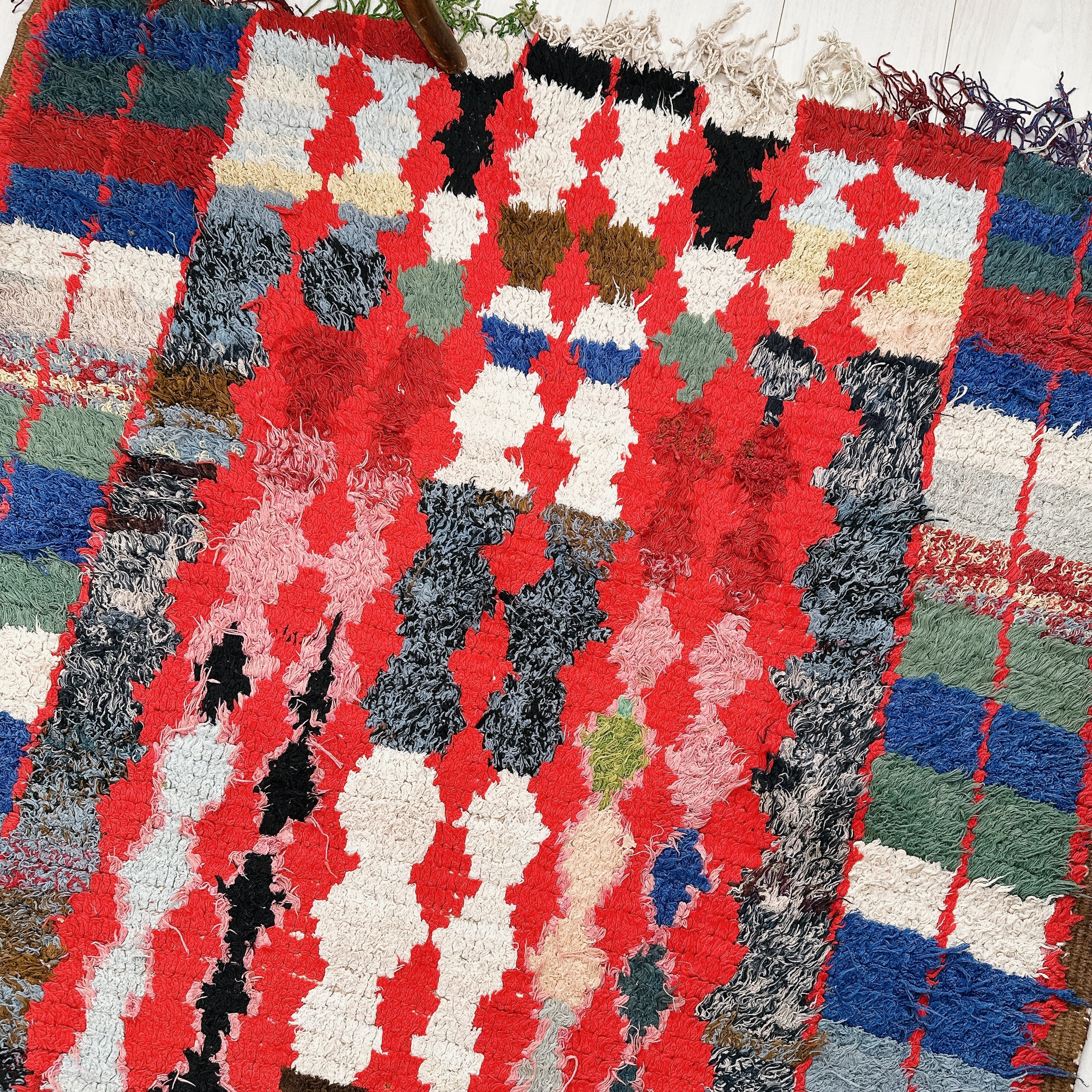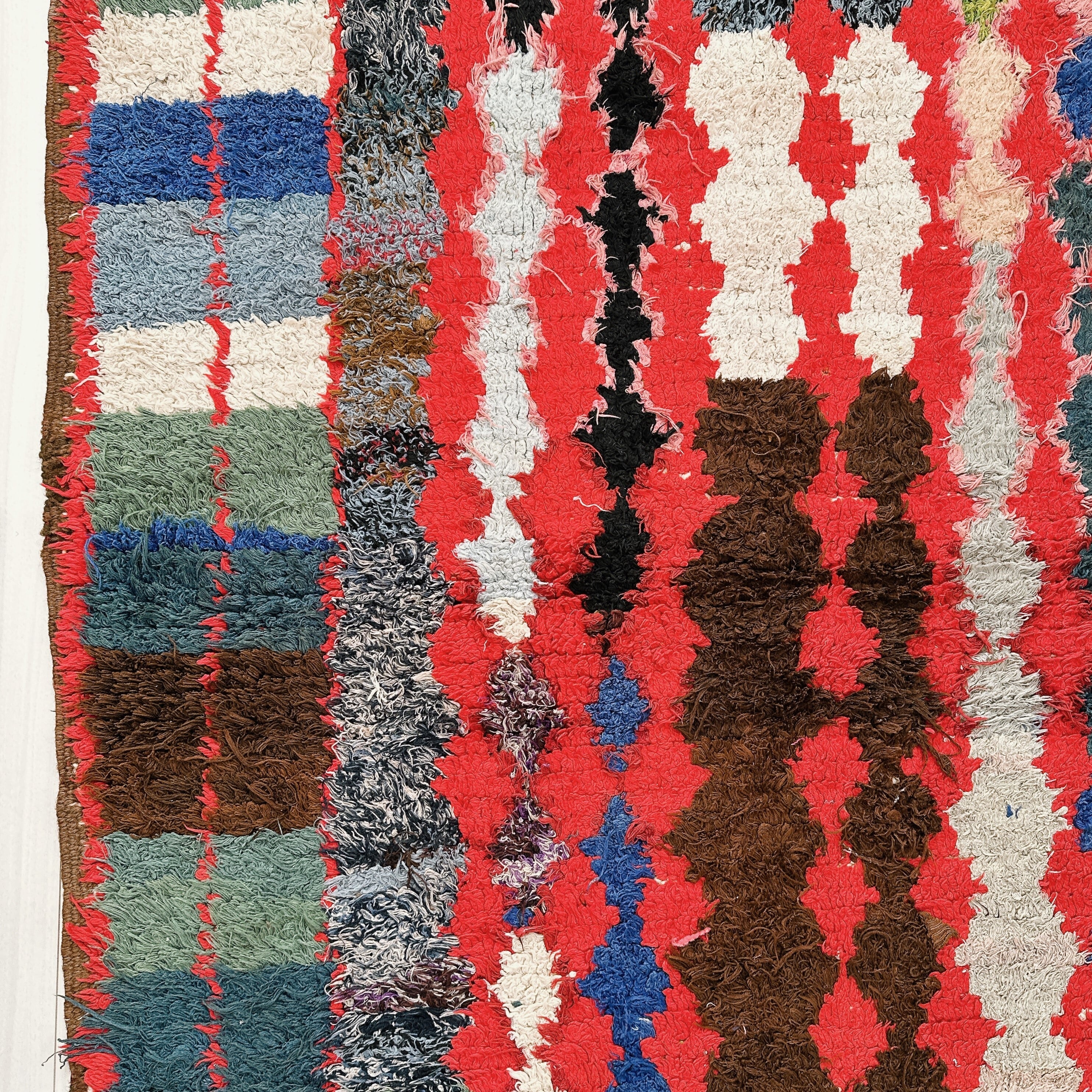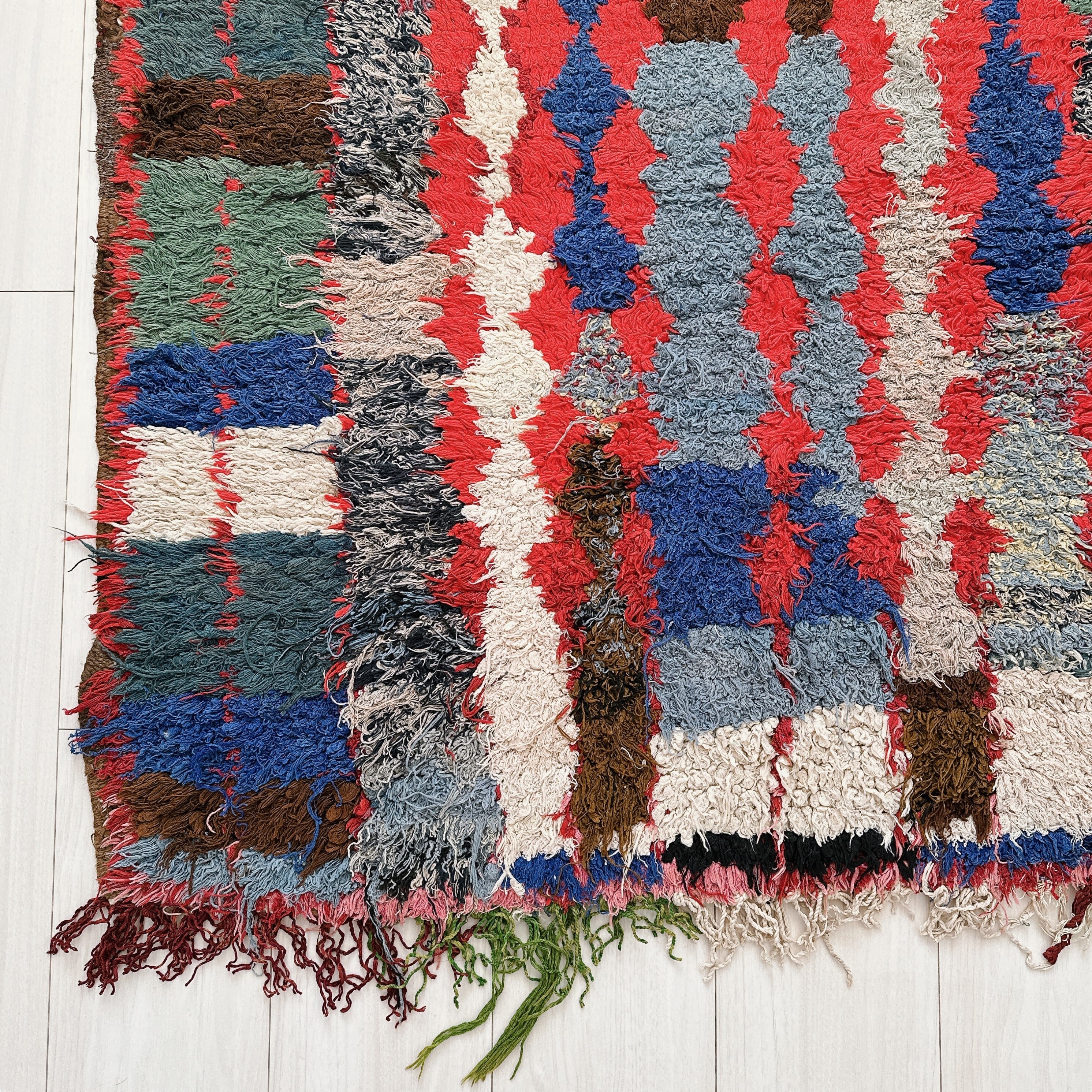 モロッコ・ブジャド地方で織られた、コットンとアクリルを組み合わせたヴィンテージラグ。
