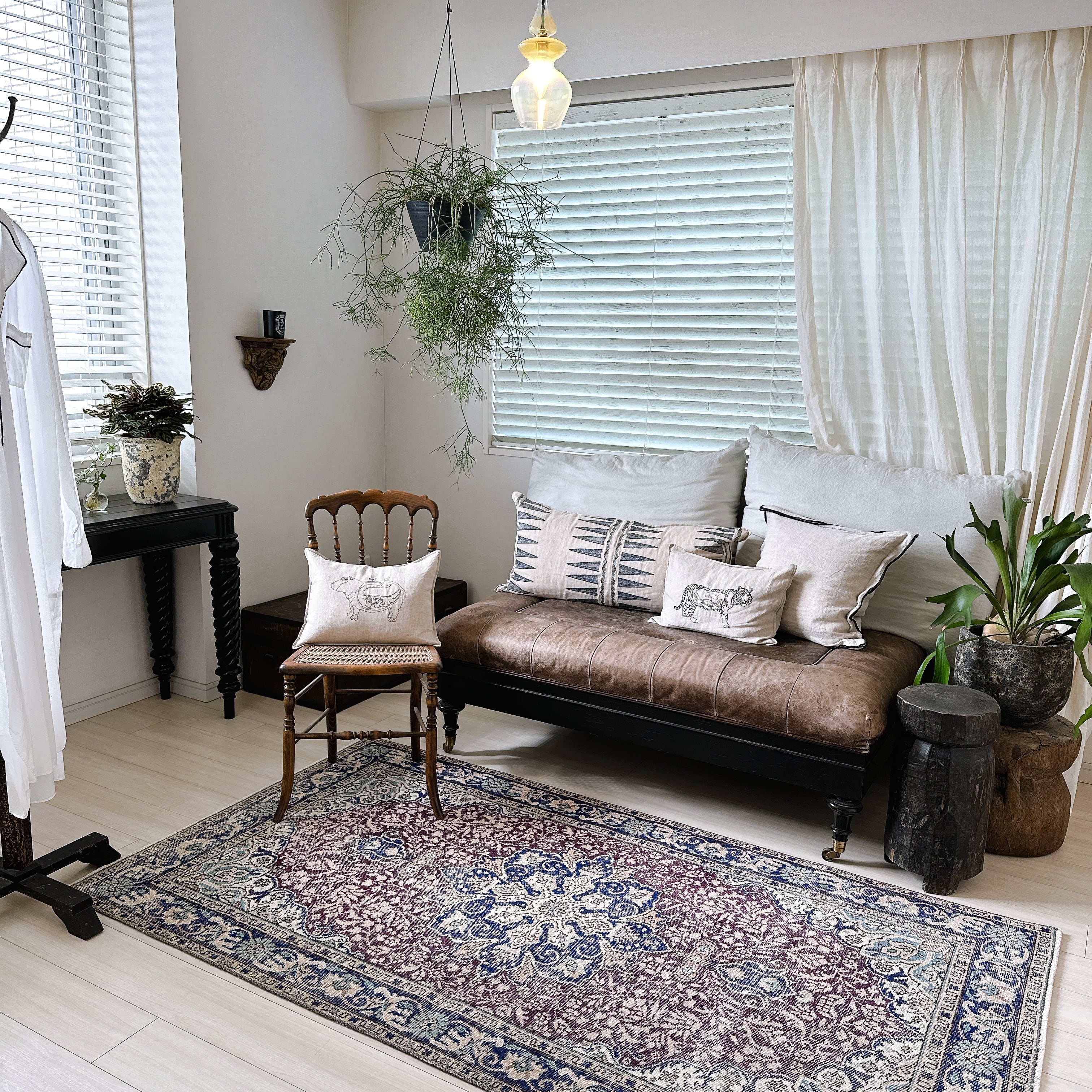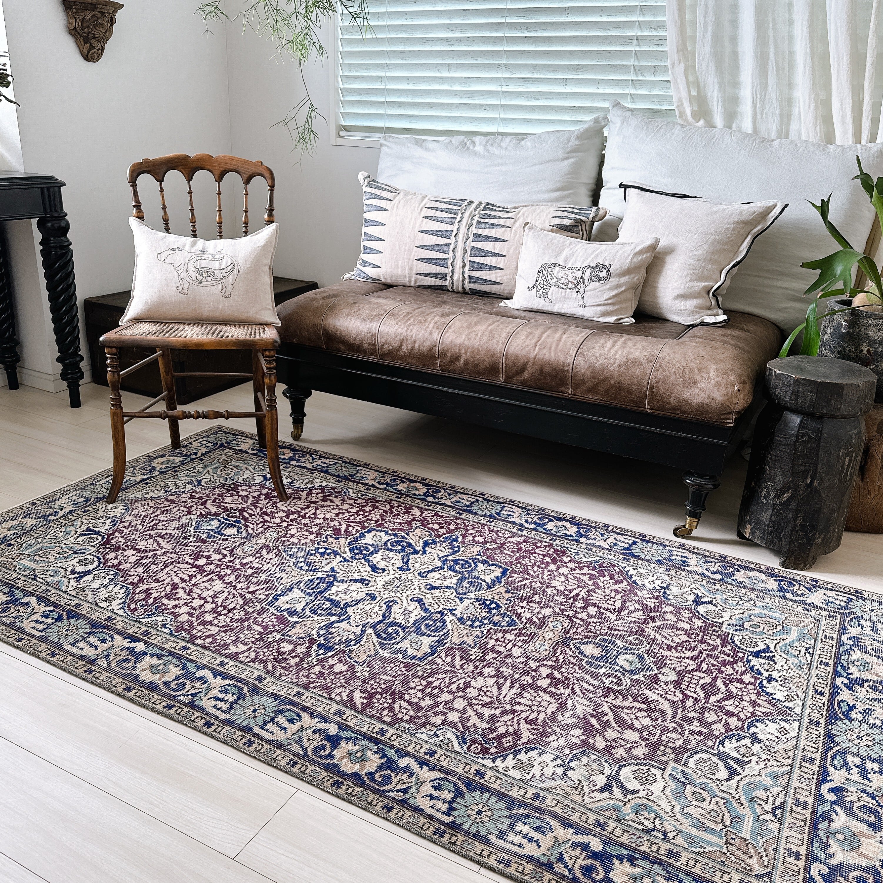 ミディアムサイズで、ソファ前やベッドサイドに合わせやすく、日常の空間に取り入れやすい一枚です。